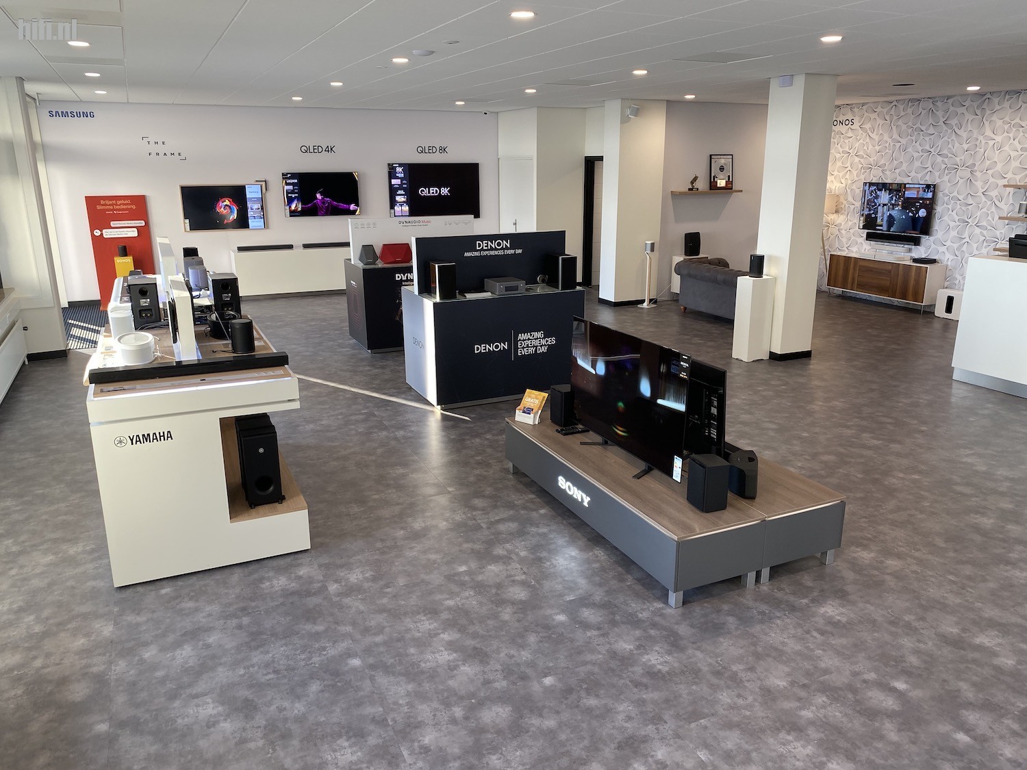 Bob leidt ons na aankomst eerst door de omvangrijke showroom met draadloze luidsprekeroplossingen op de begane grond. Naast de toonbank is een gezellig huiskamerhoekje ingericht met de oplossingen van Sonos. Hier kan de bezoeker onder het genot van koffie of thee het intuïtieve gemak van Sonos ervaren. Aan de wanden pronken de laatste generatie 4K UltraHD televisies in formaten vanaf 55-inch en groter.