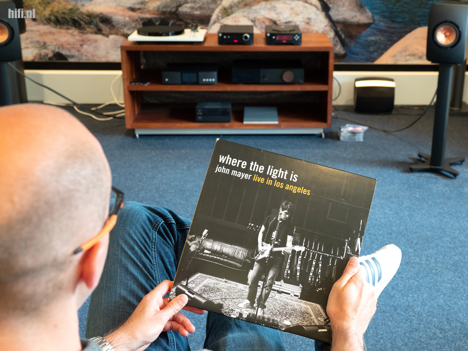 Rick overhandigt een stapel platen en wenst ons veel luisterplezier. In die stapel vinden we John Mayer – Where the light is, een opname van zijn optreden in Los Angeles. We zetten de plaat op en nemen plaats in de stoel. Buiten is het nog steeds grijs weer. Af en toe een wat regen. Typisch Nederlands weer. Ondertussen klinken de bluesachtige klanken uit het paar KEF-speakers.