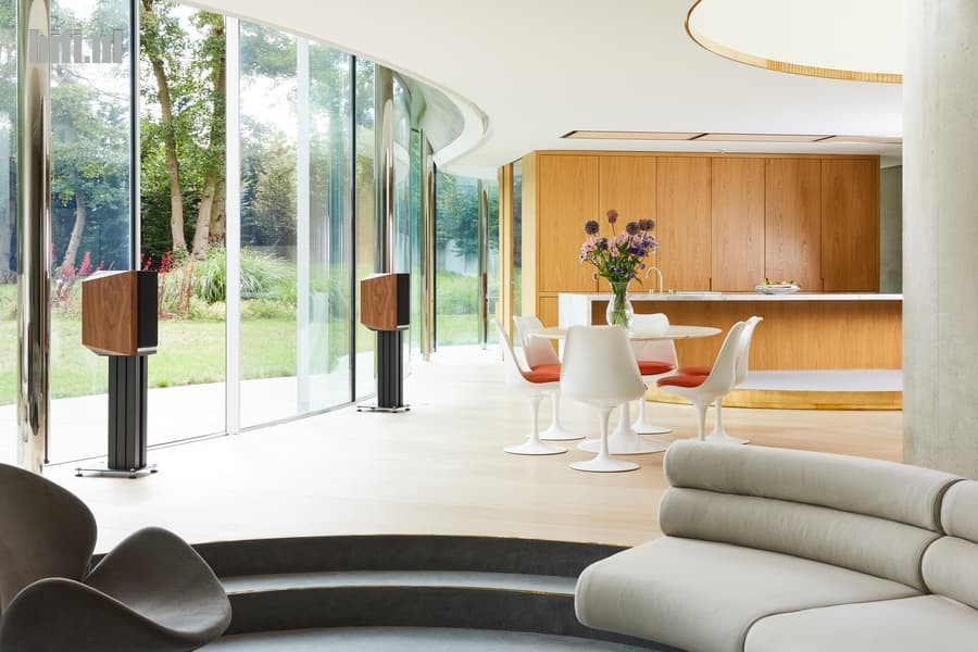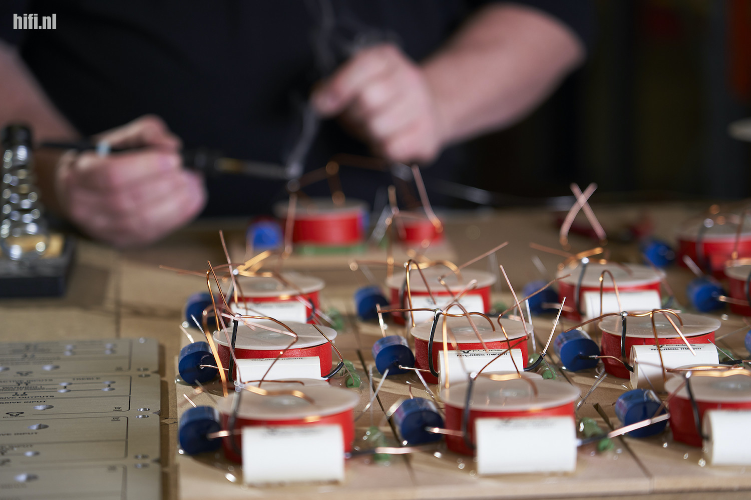 Het rug aan rug plaatsen zorgt dat kleine afwijkingen in het naar voor en achter bewegen van de conus aan de voorzijde worden opgeheven door de tegengestelde beweging van de tweede conus in de Titan 505. De SEAS units kunnen met een grote overlap in het frequentiegebied werken en daarom is een steil verlopend scheidingsfilter met vaak een grillig fasegedrag niet nodig. Nog even dit over de scheidingsfilters, elke Kudos heeft aan de achterzijde jumpers waarmee het interne filter kan worden vervangen door een actief filter. Onder meer Devialet, Linn en Naim bieden oplossingen in de vorm van actief filteren en bi-amp aansturen van de luidspreker. Resonanties die ontstaan in elke luidsprekerbehuizing kun je op twee manieren onderdrukken: demping aanbrengen of afvoeren via de wanden. De eerste methode kost rendement, verhoogt de resonantie tot in het middengebied en slokt microdetails op. Flexibele wanden zoals bedacht in de BBC onderzoekslaboratoria zorgen daarentegen juist voor verlaging van de frequentie van resonanties tot in de bastonen waar ze eigenlijk geen kwaad kunnen. Kudos heeft geleerd van de BBC met hun dunne wand luidsprekers; de binnenwanden van de Kudos serie zijn min of meer flexibel. Flexibele wanden hebben ook een nadeel, de controle is lastig, dus lost Kudos dat op met het via elastomeren gecontroleerd koppelen van de flexibele binnenwand aan stijve buitenwanden voor the best of two worlds. De Titan 505 staat op een dedicated stand met zeven pilaren. Zes van de pilaren kunnen deels of geheel worden gevuld met dempend materiaal om een resonantie af te stemmen op de luisterruimte en de klankkleur naar eigen smaak enigszins te kunnen veranderen.