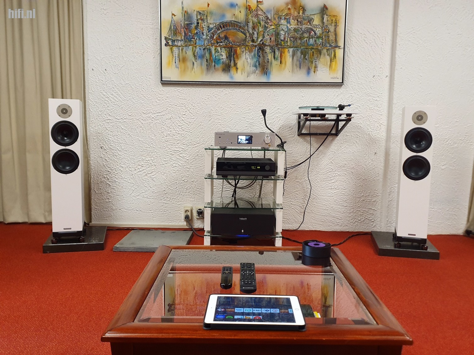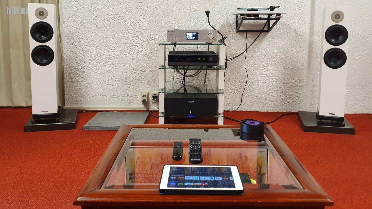 NB: Niet inbegrepen zijn de Cambridge Audio Azur 851N, IsoAcoustics dempers en de Chord Company bekabeling tussen de apparaten, luidsprekers en voor het ethernet.