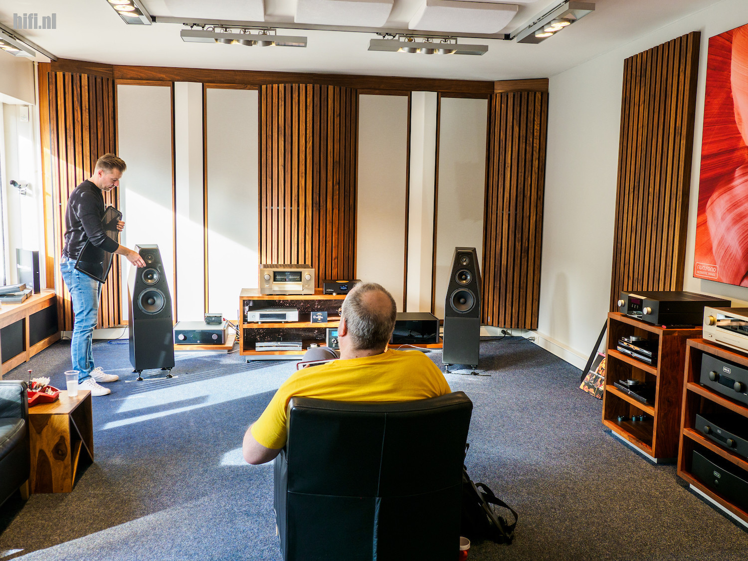 Na een door de coronamaatregelen bijna lege trein én metro, en de dientengevolge zeer ontspannen heenreis, is de ontvangst als vanouds allerhartelijkst. En er is ook meteen een verrassing: het ‘kleine team van zeer trouwe medewerkers’ is sinds de laatste keer dat ik hier op bezoek was iets minder klein geworden door de toevoeging van Ton Spruijt, toevalligerwijze een oud-collega van me uit een grijs verleden, toen we bij verschillende filialen van een inmiddels van naam veranderde hifi-winkelketen werkten.