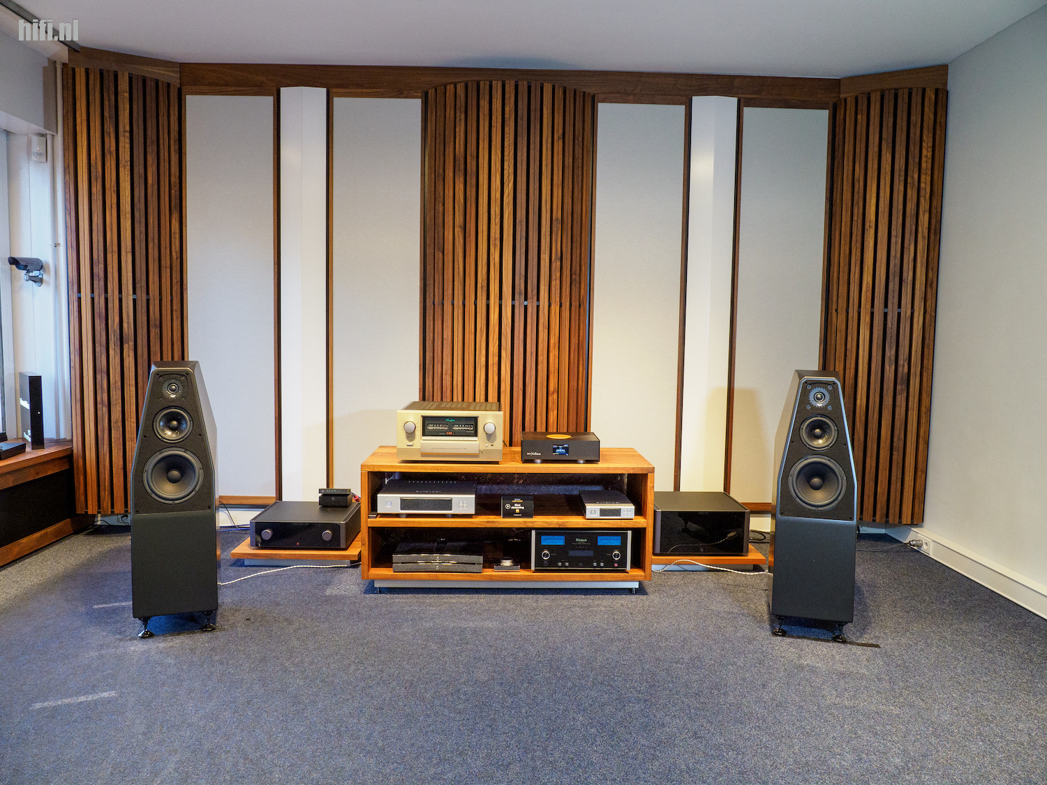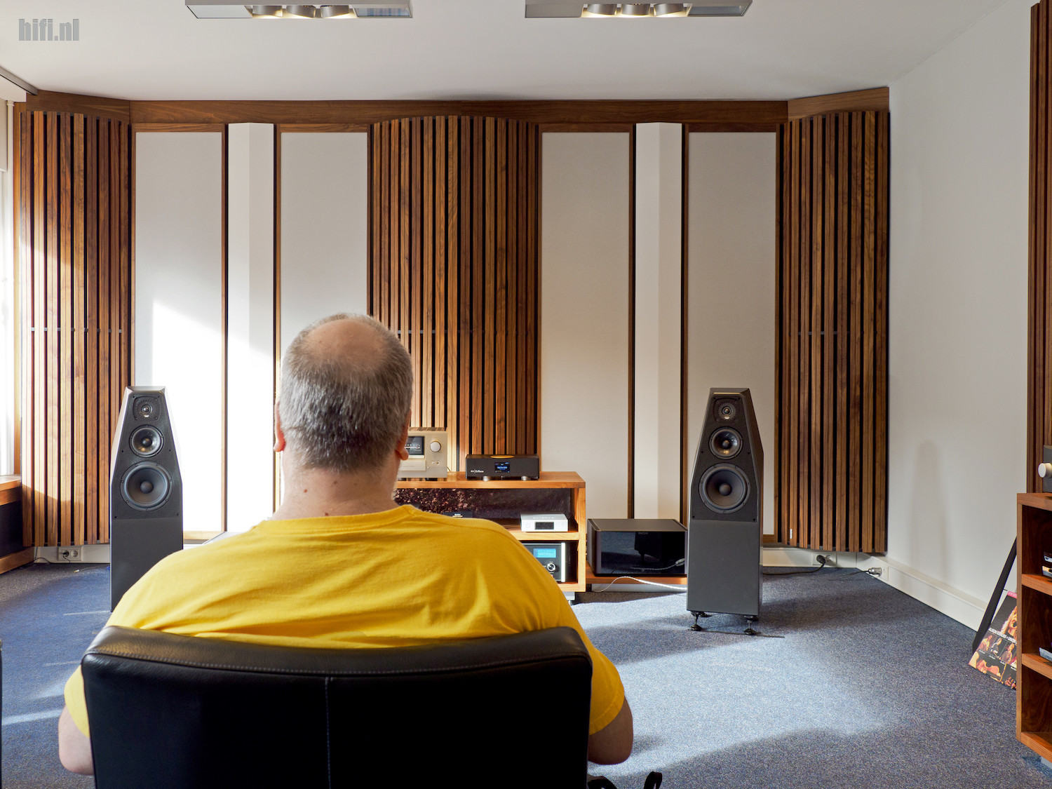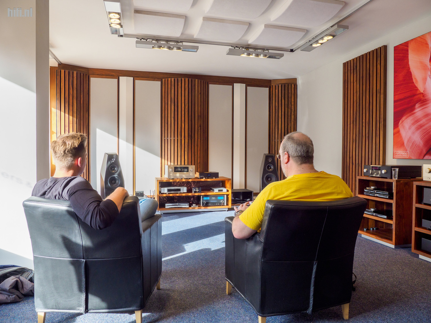 Wijze woorden, denk ik, en daarmee is het tijd geworden om naar de grote luisterruimte te verkassen, waar de voor deze Hi-Visit geselecteerde set al fraai muziek staat te maken. Als hart van de set dient de nieuwe Accuphase E-800 geïntegreerde versterker, een jubileum-model dat het vijftigjarig bestaan van de Japanse fabrikant luister had moeten bijzetten maar dat door dat vermaledijde virus wat langer op zich liet wachten. Hij was de vertraging echter méér dan waard, want deze grote, volledig gebalanceerd opgebouwde versterker levert op soevereine wijze 50 Watt Klasse-A aan 8 Ohm. Hij is stabiel tot maar liefst 1 Ohm en gooit dan niet minder dan 300 Watt Klasse-A in de strijd. Dit exemplaar is voorzien van de optionele DAC50 insteekkaart, waarmee het in feite een ‘Super-Integrated’ is geworden. Bij Accuphase is een ‘insteekkaart’ overigens een volwaardige da-converter, die binnen de versterker ook een eigen voedingslijntje krijgt. Het voordeel van een losse kaart is duidelijk: de versterker gaat sowieso een leven lang mee. De DAC feitelijk óók, maar in de digitale technologie vindt nog steeds veel verbetering plaats. Wie op dat vlak bij de tijd wil blijven kan na verloop van tijd dus volstaan met een DAC-wissel. Duurzaam!