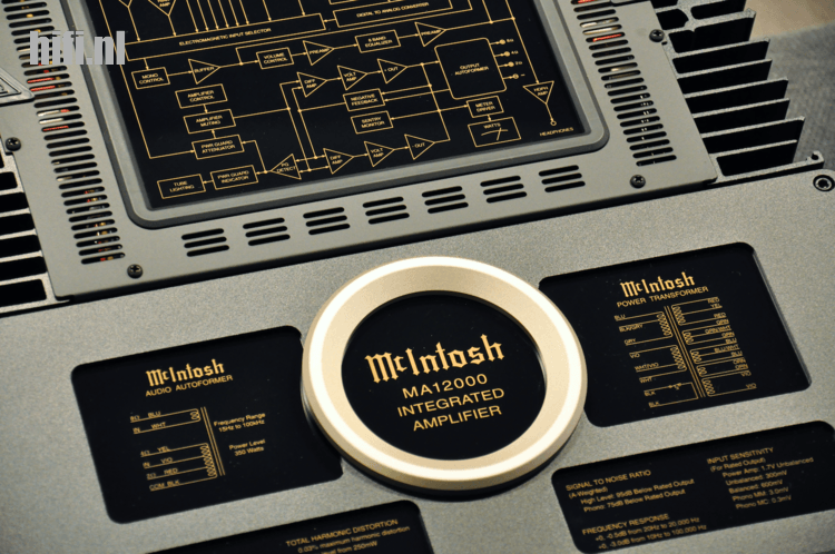 Hoewel de MA12000 is opgetrokken in de kenmerkende stijl van McIntosh, zijn er ook nieuwe elementen. De bekende autoformers en de voedingstrafo bevinden zich nu in een nieuwe behuizing met glazen bovenkant, afgedekt door een glazen naamplaatje met daaromheen een decoratieve sierring. De belangrijkste prestatiespecificaties en een gedetailleerd blokschema zijn gedrukt op vijf glaspanelen. Natuurlijk zijn de glazen frontplaat en de blauwe VU-meters gebleven.