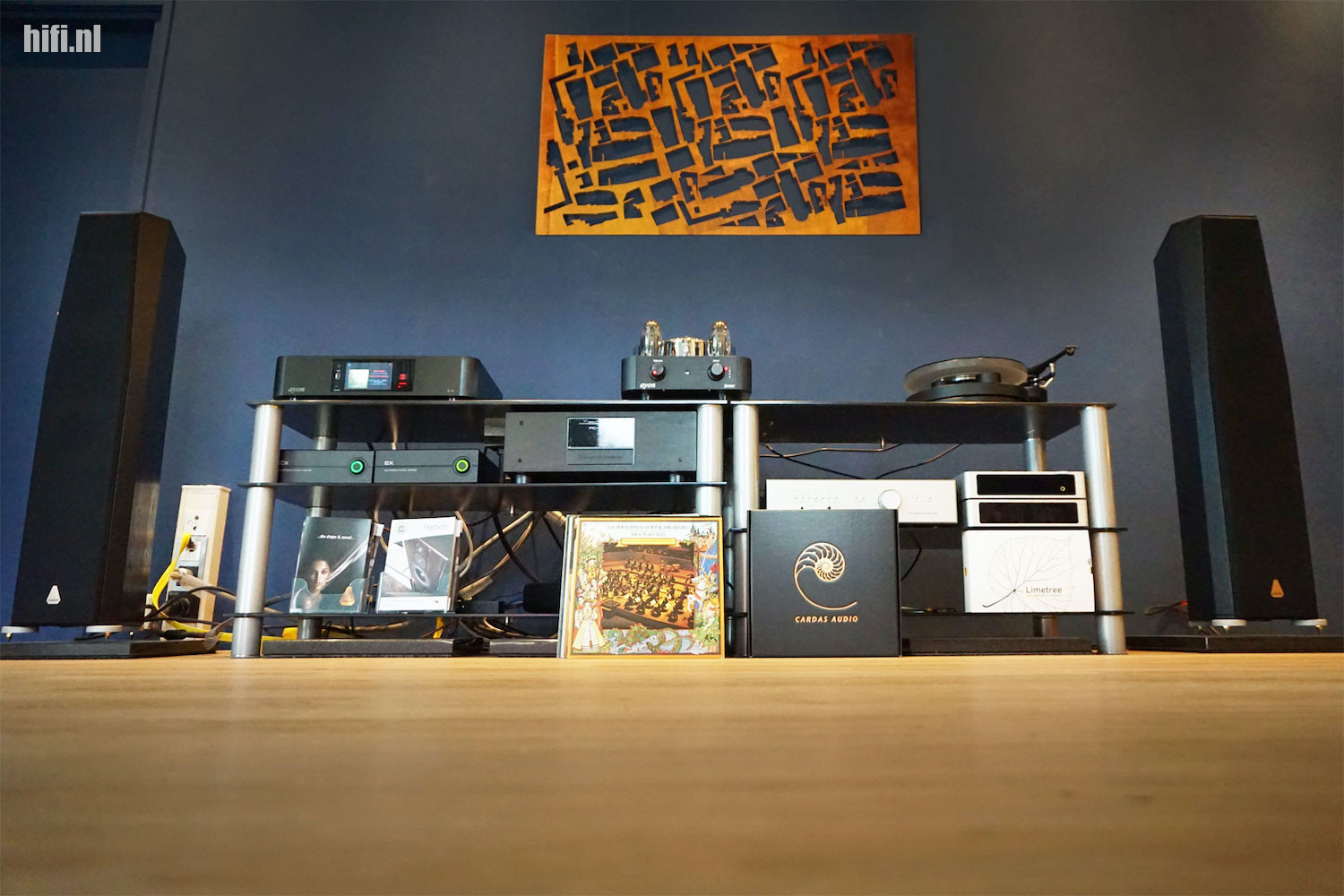 Waar vandaag naar geluisterd gaat worden is een Antipodes CX en EX Roon server, opslag en streamer, met zowel USB als met ethernet gekoppeld aan een Ayon S-10 II Signature streamer/DAC/Roon endpoint. Via een Cardas interlink is de S-10 gekoppeld aan een prachtige Ayon Spirit SE geïntegreerde buizenversterker. Een helaas uitverkochte serie van slechts 100 stuks. Geruchten gaan dat er nog 100 beschikbaar komen, geruchten, geen zekerheid. Vervolgens zorgen Driade Flow luidsprekerkabels voor het aankoppelen van een set Driade Premium Model 3 luidsprekers. De stroomvoorziening gaat met een Ansuz blok op de beschreven installatie. Resteren om te noemen Wireworld ethernetkabels.