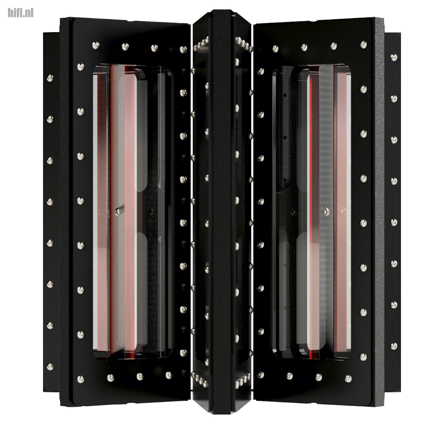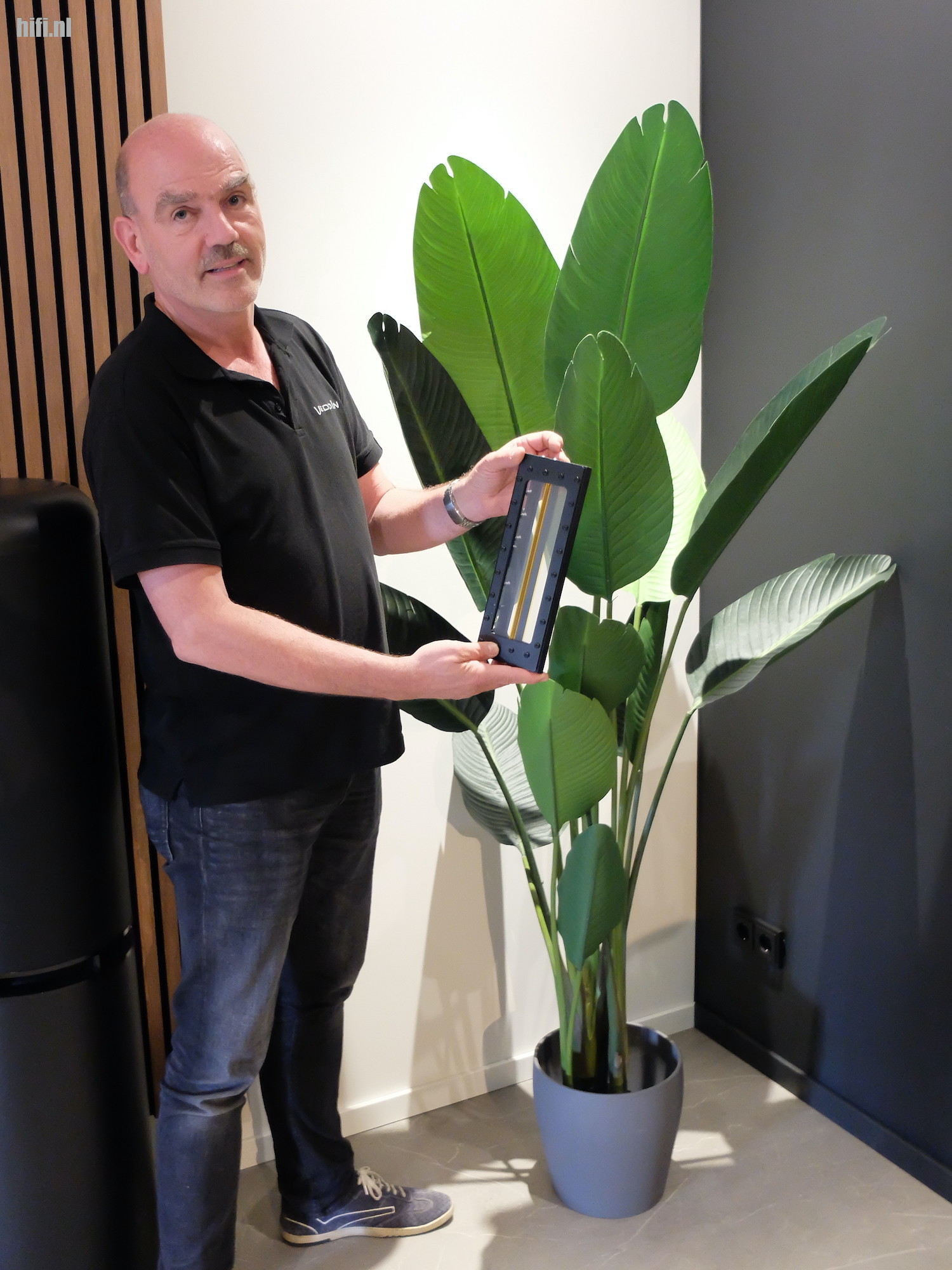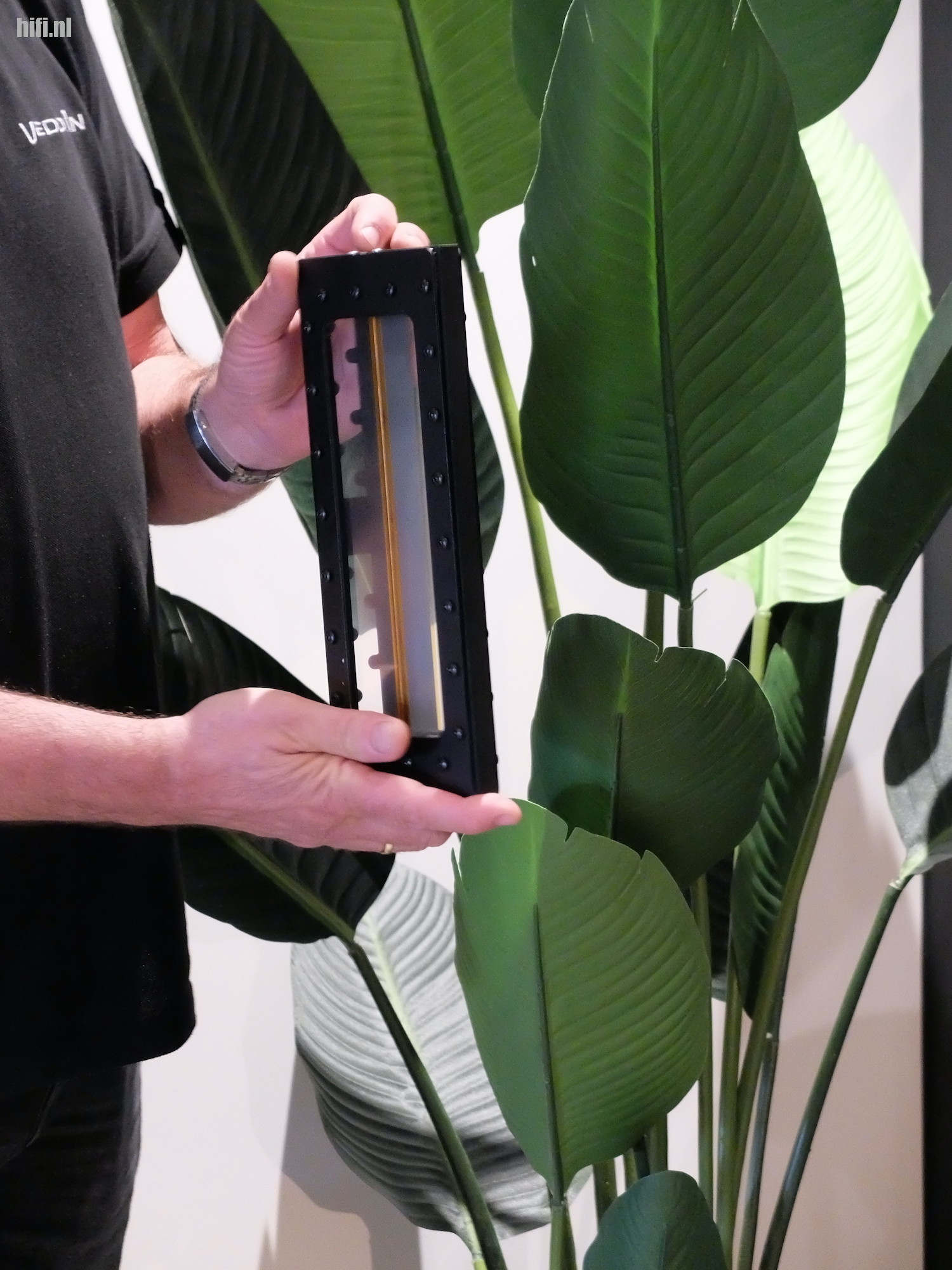 We installeren ons in de comfortabele zeteltjes om ons over te leveren aan de muziek. “Denk even terug aan de magnetostaten uit de jaren 80”, zegt product manager Rens Timmermans. “Die grote, vlakke panelen met hun karakteristiek uiterlijk en geluid. Bijzonder gedetailleerd, snel en accuraat in het hoog en het midden. Maar, met het laag dat vaak wel wat achter bleef. Hoe mooi is het niet dat we vandaag van dat magnetostatische karakter kunnen genieten, aangevuld met de door Veddan ontwikkelde technologie?”
