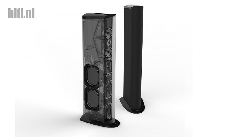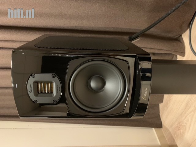 Vandaag worden twee modellen beluisterd, een vloerstaander en een monitor. In dezelfde ruimte, deels met dezelfde set waarbij alleen de versterkers gewisseld worden. Het eerste model is de Triton One.R, een model met een ingebouwde 1600 Watt ForceField subwoofer. De ingebouwde digitale versterker met DSP stuurt drie 5x9 inch actieve woofers aan. Welke ondersteund worden met vier passieve membranen van 7x10 inch, geplaatst in de zijwanden, in plaats van gebruik te maken van een normaliter toegepaste basreflexpoort. Omdat de controle en de werking van een passieve woofer veruit superieur is aan een baspoort. GoldenEar noemt ze QPIR, wat staat voor: Quadratic Planar Infrasonic passive Radiator.