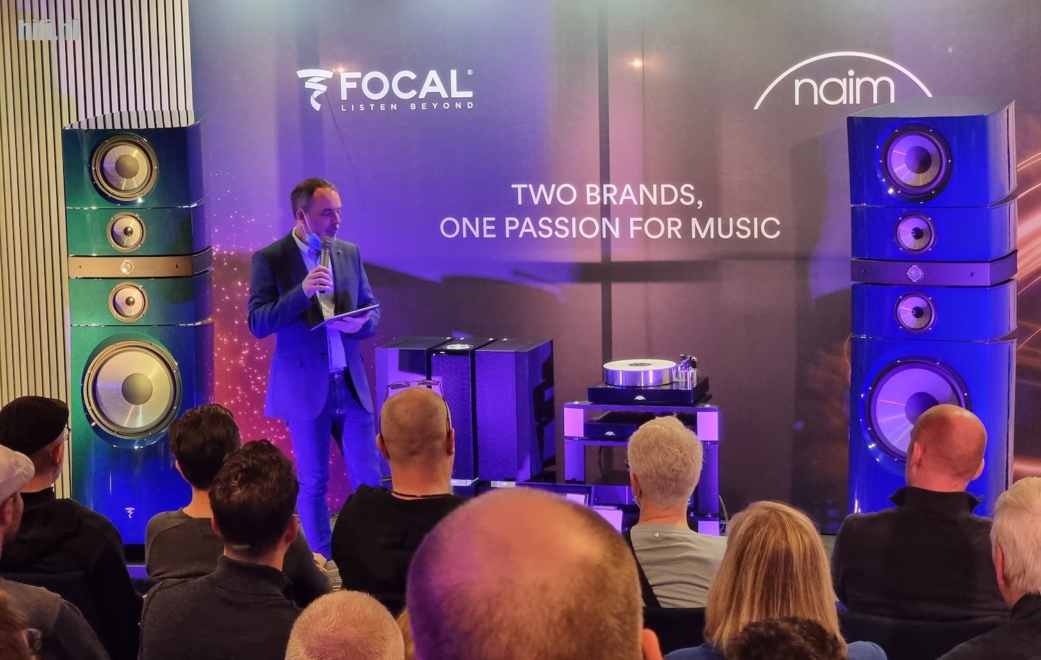 Een verslag zou kunnen beginnen bij de voordeur, maar laten we gewoon doen wat vele bezoekers ook deden: hollen naar de ruimte die zustermerken Focal en Naim hadden ingericht. Een spectaculaire start, want de Frans-Britse alliantie pakte groots uit op deze show. Letterlijk, want die Grand Utopia EVO-speakers die ze uit Saint-Etienne hadden meegebracht torenden boven het publiek uit.