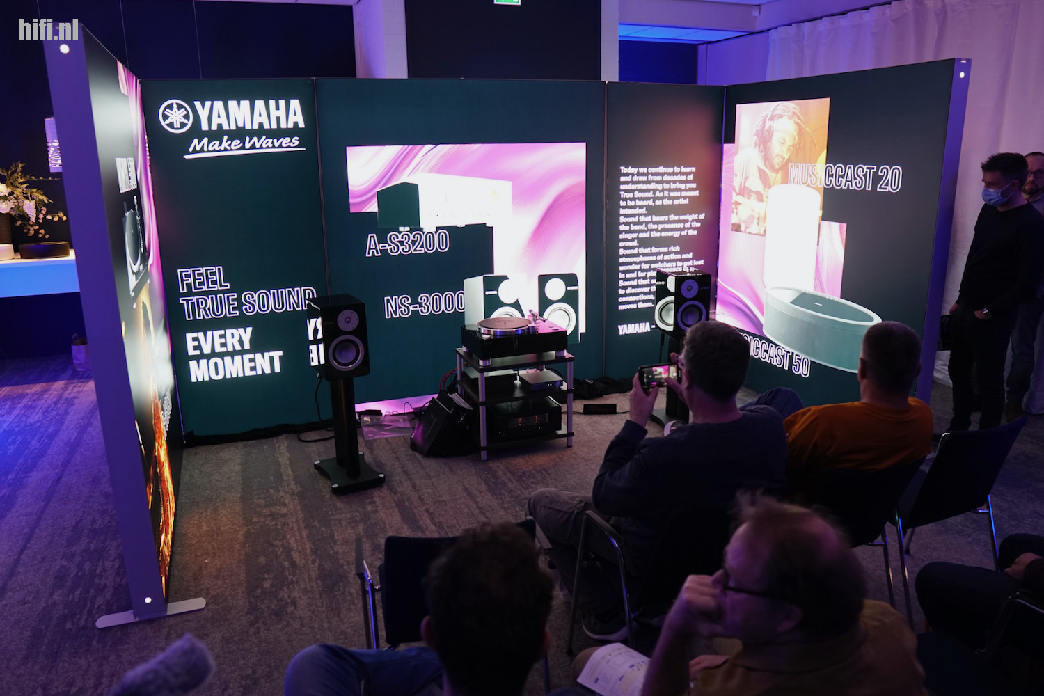 Yamaha trok ook alle registers open in zijn kamer op de eerste verdieping. Langs een kant kon je genieten van een stereo-opstelling met de NS3000-speakers, aangestuurd door een Yamaha A-S3200-versterker. En ja, ook de GT5000-draaitafel was er bij. Wat een gigant! Niet iedereen denkt aan Yamaha als ze shoppen voor luidsprekers, maar deze mooie demo deed vast enkelen twijfelen.
