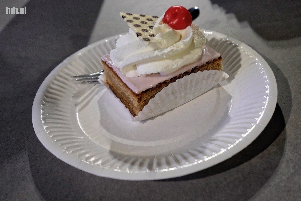 Alvorens de nieuwe Atom officieel voor de aanwezigen wordt onthuld, eten we na de laagdrempelige ontvangst eerst traditioneel een stukje gebak om de geboorte van dit nieuwe muziektalent te vieren. Na de gezellige kennismaking krijgen we eerst een uitgebreide rondleiding door het bedrijf. We maken kennis met een ruim opgezette productiehal. Deze deels gerobotiseerde productieomgeving is voorzien van CNC-machines waarmee het bedrijf, onder meer, alle aluminium onderdelen van haar Veddan luidsprekers vervaardigd.