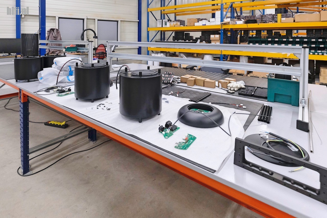 Terwijl we door de productiehal worden geleid wordt ons de ‘subwoofer’ van de Atom getoond. Deze wordt, net als bij de grotere Origin, trillingvrij onder de mid-hoog unit gemonteerd en afgefilterd op 150Hz. Feitelijk kunnen we met de Veddan Atom spreken van een ‘halve’ Origin. De onderzijde van de originele Origin is komen te vervallen en de gehele Origin is in mini uitvoering in de top ondergebracht.