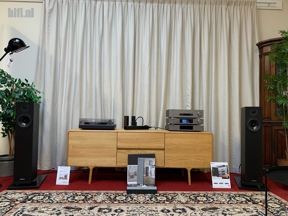 Last but not least gaan we luisteren naar een Cambridge Audio systeem met Spendor A7 luidsprekers. Samen met woninginrichter Spyk71 uit de Steenstraat is de ruimte van Dimex aangekleed tot een leefruimte met meubels, een kleed, een dressoir en extra verlichting. In de huislijk sfeer is het fijn luisteren naar de A7 luidsprekers van Spendor en de elektronica van Cambridge Audio.
