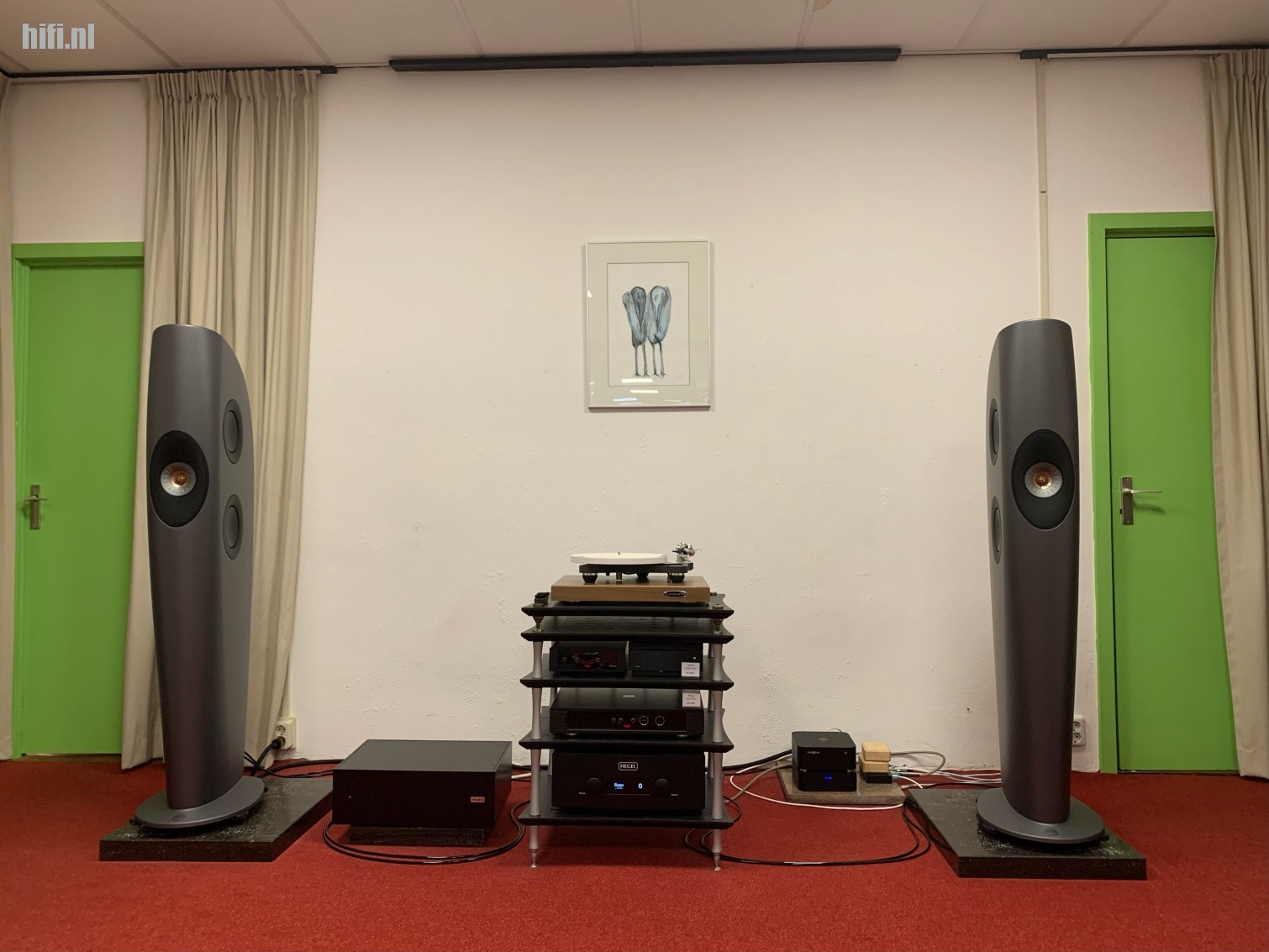Aftrap voor mij vormt KEF met Hegel. Opgesteld in de mooiste luisterruimte van Bender hifi staat de Blade II Meta te spelen op Hegel 590 versterking. Een Silent Angel Rhein Z1 werkt als Roon server, een Silent Angel Bonn N8 switch met een Silent Angel voeding staat er voor ethernet. Een netfilter van Audes zorgt voor schone stroom. Heb je net als Harald de mogelijkheid een zo grote luidspreker vrij op te stellen, dan zorgt dat met deze Blade voor een ruimte stage die doorloopt tot ver buiten de luidsprekers. Muziek speelt vloeiend en gemakkelijk, zelfs onopvallend in de goede zin van het woord, met dank aan de klankbalans.