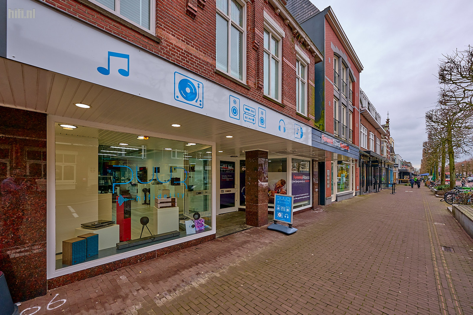 Wanneer ik de drie treden van de trap naar boven bestijg ontwaar ik aan de linkerzijde een soort van langwerpige bar waar binnenkort een speelse hoofdtelefoonopstelling gaat verschijnen. Leuk is dat je daarbij echt van je af omlaag de winkel in kan kijken, wat een prettig ruimtelijk gevoel geeft. De rest van dit winkeldeel is ingericht als een soort van luisterruimte. Ik noem het bewust ‘een soort’ omdat de luisterplek aan beide zijden eigenlijk helemaal open is en fraai gestileerde verplaatsbare akoestische wanden die niet tot aan het plafond doorlopen de enige afscheiding vormen. Samen met geraffineerd gebruik van professionele LED-kleurenlampen is een opvallend intiem geheel ontstaan waar het goed toeven is.