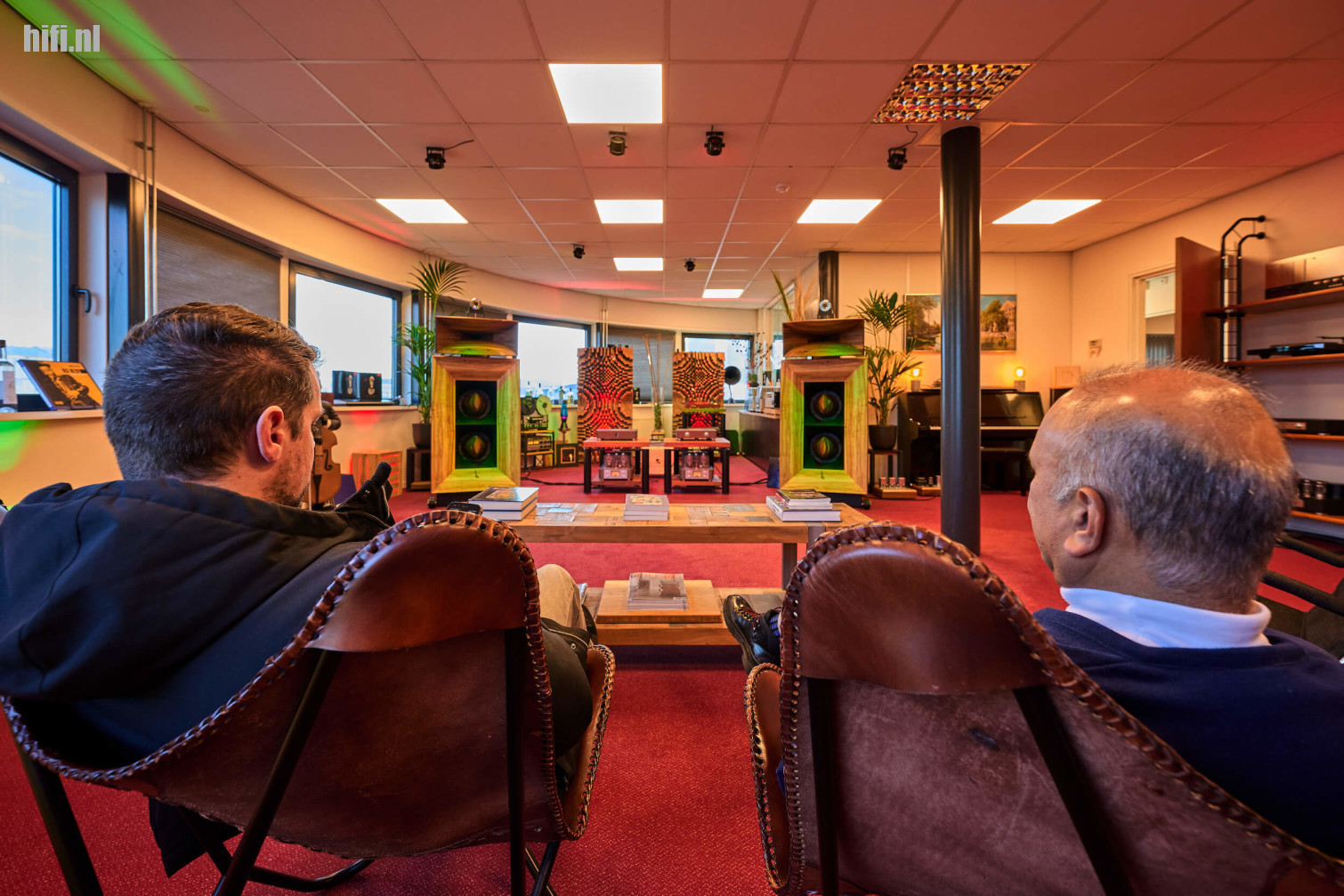 Naar dit type luidsprekers luister je niet als akoestisch behang en ze verdienen het ten volle om er mee van muziek te genieten. Tijdens de dag is doorlopend muziek afgespeeld en was er zowel met Marco als Thijs volop gelegenheid om van gedachten te wisselen.