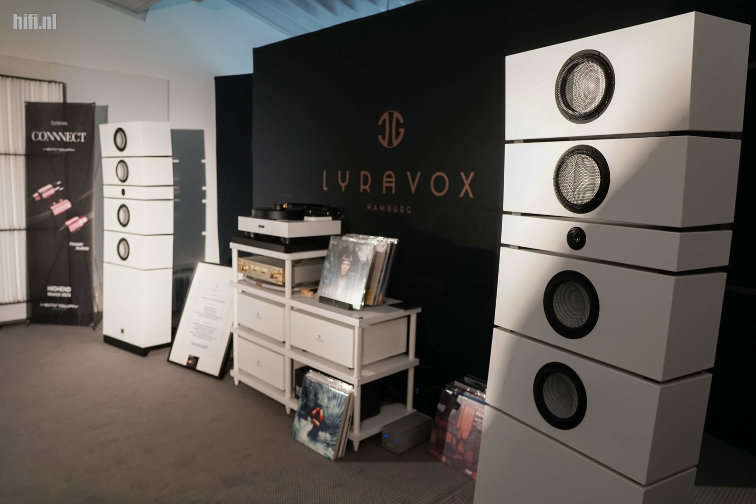 Vergeken met de bijna-showrooms die je elders op de beurs kon bezoeken, viel de demonstratie van Gerschman Acoustics op door zijn pure soberheid. Maar vergis je niet: het systeem dat er opgesteld stond was behoorlijk high-end, met als pronkstuk een geïntegreerde versterker van True Life Audio.