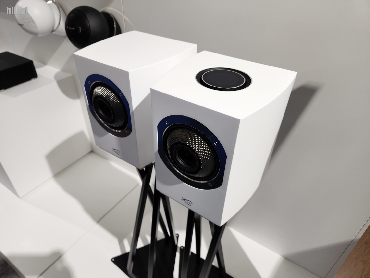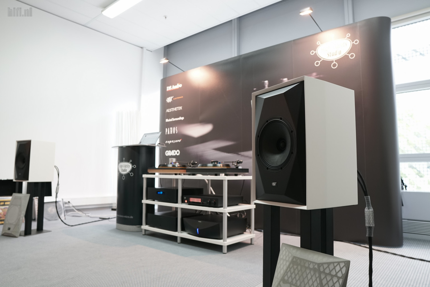 High End bezoeken zonder langs te gaan bij Kharma Audio? Dat kan natuurlijk niet. In beeld: de indrukwekkende Enigma Veyron EV-2D's.