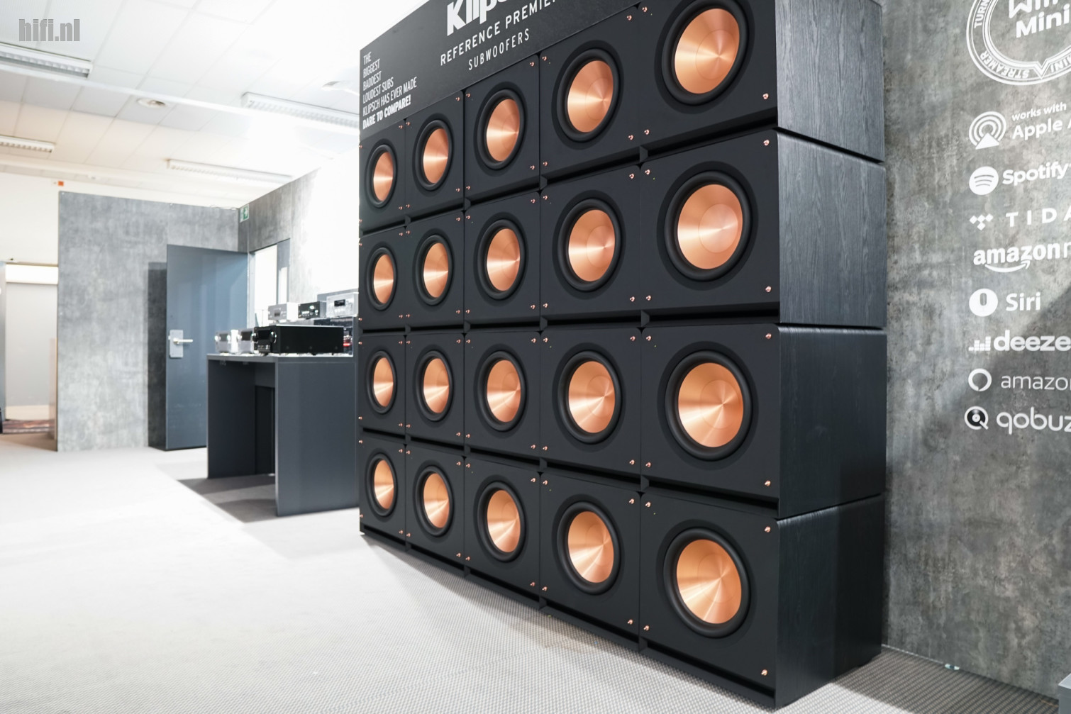 Een sub? Twee subs? Vier? Doe er gewoon maar een muurtje van, Klipsch.