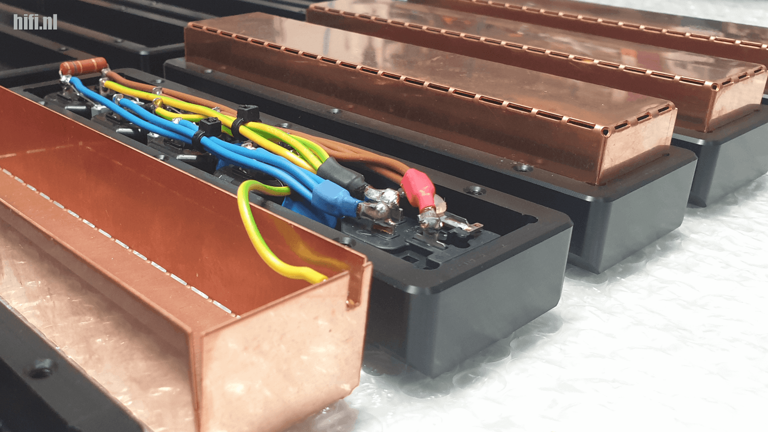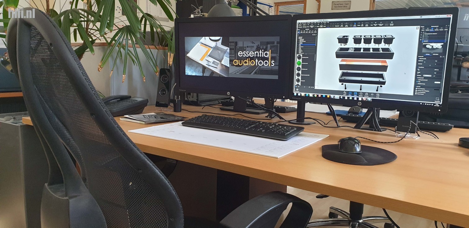 Voor het samenvoegen is uiteraard meer nodig voor alle drie productgroepen. Elektronica-ontwerp is daar onderdeel van, net als het maken van draadbomen voor de stekkerblokken, het assembleren van netsnoeren en het solderen van onderdelen op printplaten tot en met het verpakken van alle vervaardigde producten. Essential Audio Tools is wat dat betreft van alle marken thuis en koopt alleen het basismateriaal in zoals POM-C kunststof, connectoren, kabels, componenten, kale printplaten en het kleine materiaal.
