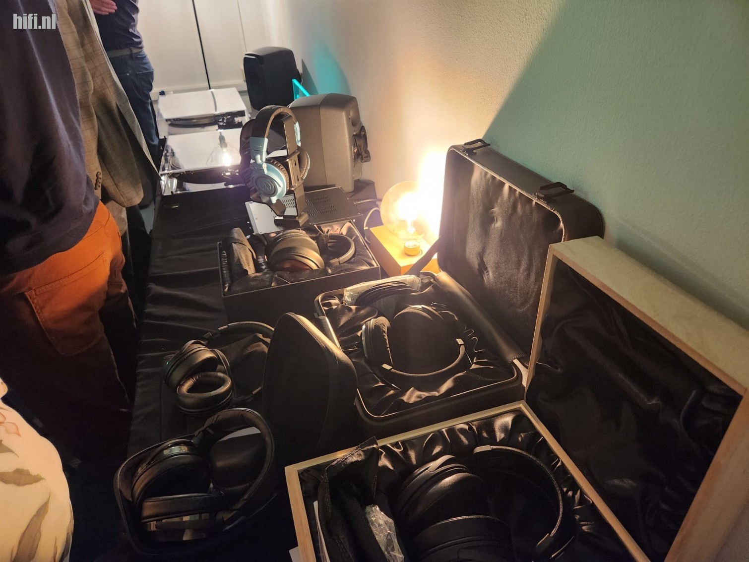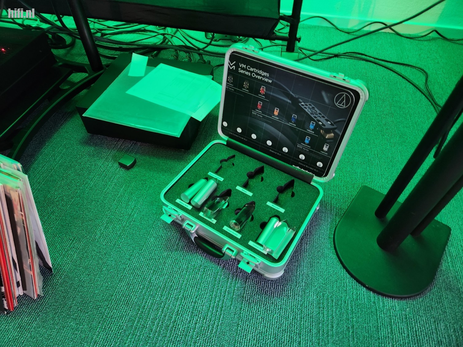 In deze kamer werd er niet stilgezeten (behalve om te luisteren, natuurlijk). Er werd volop gewisseld en geluisterd, want naast een hoop platen had Audio-Technica een paar koffertjes vol elementen mee.