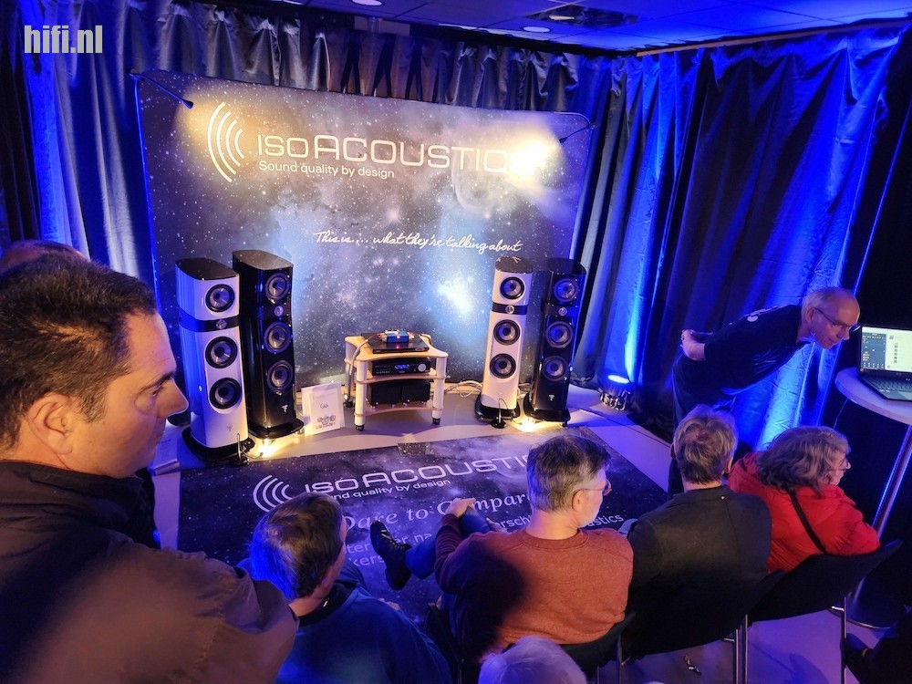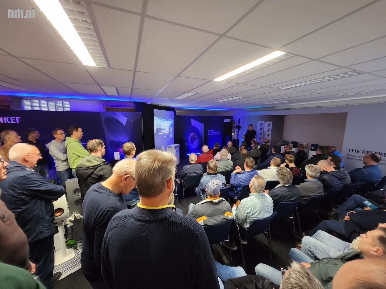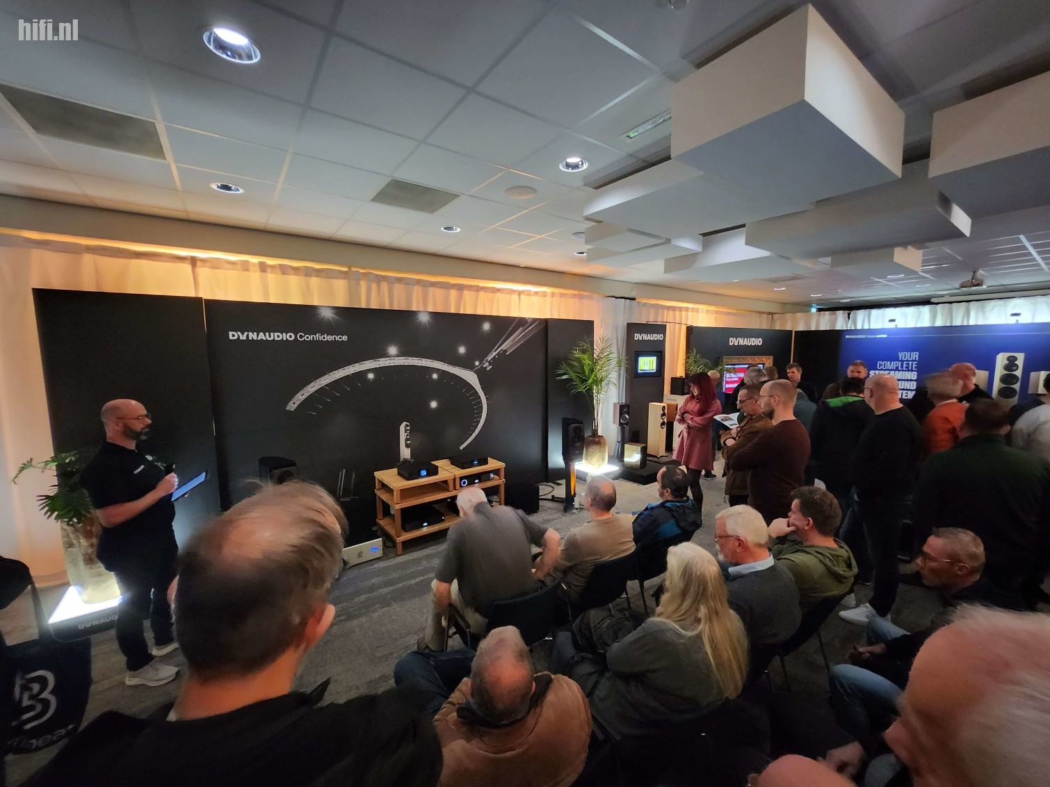 In Tilburg was de interesse zeker niet minder in deze luidsprekers, hier aangestuurd door een hybride buizenversterker van KoraAlle stoeltjes bezet en veel mensen die bleven staan tot de demo begon, en dan een groter dan verwachte wall-of-soundervaring fraai!