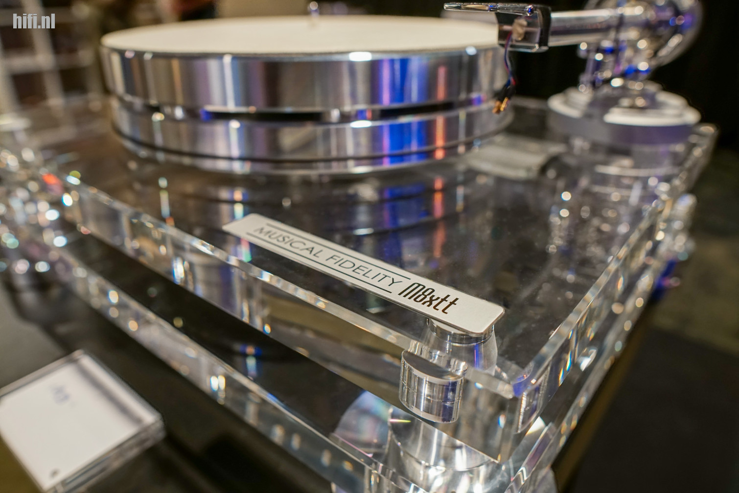 Over Transrotor gesproken: bij de kamer van Monitor Audio Nederland het publiek (en wij) een boeiende uitleg over de opbouw van de meegebrachte Strato Nero met externe Konstant FMD-voeding. Indrukwekkend hoe er drie motoren en riemen worden ingezet om de massieve draaischijf op constante snelheid te houden. En dan die olielagering nog, wat de frictie bij het draaien vermindert.