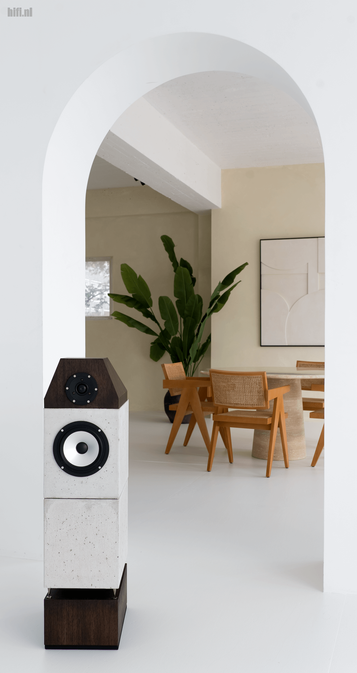 Hout, MDF, het laat zich gemakkelijk bewerker, lakken of fineren. Het heeft ook zijn nadelen want het materiaal kan bewegen ondanks verstevigingen in de behuizing van een luidspreker. Soms is dat gewenst zoals op BBC research gebaseerde luidsprekers bewijzen, maar meestal willen we het resoneren voorkomen. Een oplossing is het gebruik van beton, gegoten in een mal met een wanddikte van 25mm.