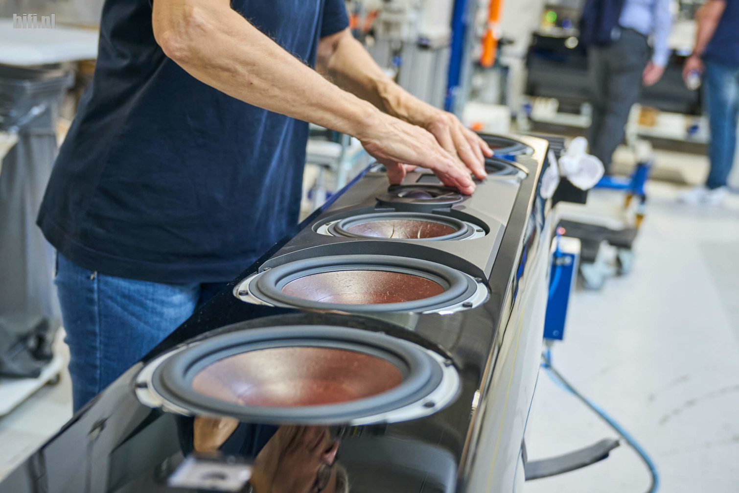 Maar toch, ondanks de grote machines en die ene robotinstallatie blijft speakers bouwen nog altijd handwerk. Vakmanschap – of liever, gezien de samenstelling van het personeelsbestand: vakvrouwschap – is nog een designprincipe van het merk.
