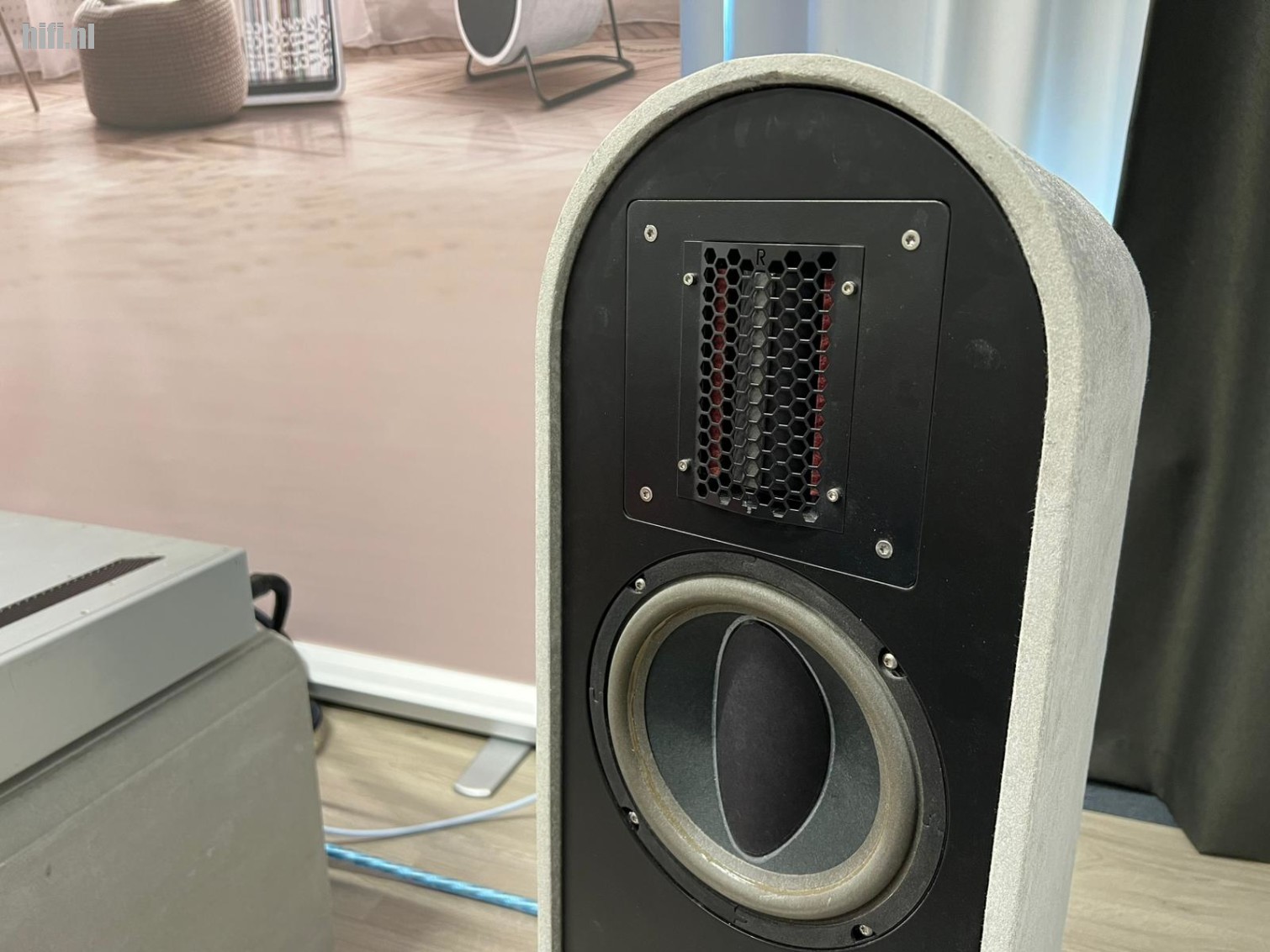 Behalve het lineaire klankverloop waarmee deze speakers de muziek aan bezoekers van de kamer lieten horen, hebben deze ook nog eens een tijdloos vormgegeven design. De luidsprekers zijn intern vervaardigd uit een houten constructie waaroverheen de optische schil van vezelcement is aangebracht. Door de gekozen vorm zijn deze luidsprekers niet enkel aantrekkelijk om te zien, hiermee worden ook interne kastreflecties voorkomen.