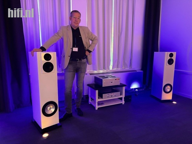 We vonden Cyriel en zijn forse, prachtig gebouwde Model One luidsprekers tijdens de zaterdag van de show de ruimte van Quad-raad, de Benelux-agent van onder andere het Japanse merk Soulnote, waarvan de A1 versterker en de S3 SACD-speler het hart van het demo-systeem vormden. De man achter Quad-raad is Theo Wubbolts, óók een zeer bekende naam in de vaderlandse hifi-journalistiek. We spraken Theo later die dag en hij vertelde ons dat hij de samenwerking met Cyriel meteen zag zitten: “Hij is een muziekman, geen apparatenman!”