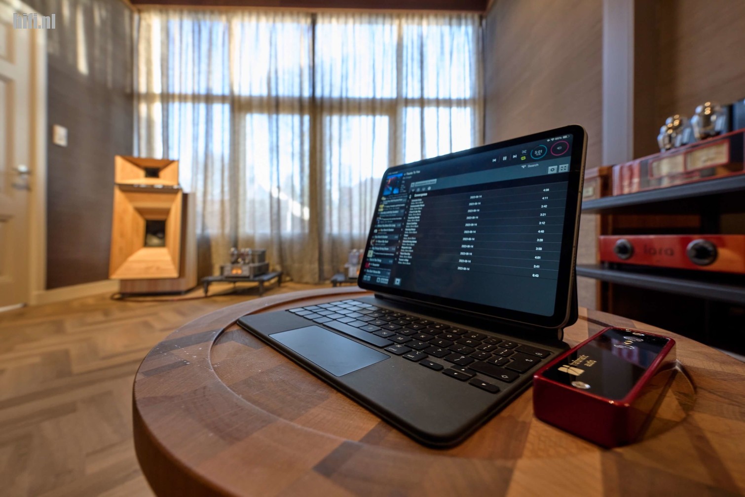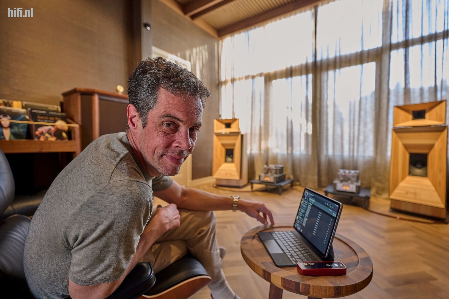 De Gran Gioia MK IV luidsprekers zijn fors, maar vloeien visueel door het slim gekozen lichte fineer toch mooi samen met de rest van het interieur. Doordat we deels dezelfde nummers draaien kan ik alles goed vergelijken. Daardoor is het snel glashelder dat deze setting het beste en meest natuurgetrouw van alle drie de opstellingen speelt. Niet zo gek natuurlijk als je de substantieel hogere prijs in ogenschouw neemt, maar je hoort het er wel aan af. Het mooie vind ik dat de andere twee opstellingen nergens gedegradeerd worden, maar dat deze topsetting het vooral in de vloeiendheid en gevoelsmatige verdieping zoekt.