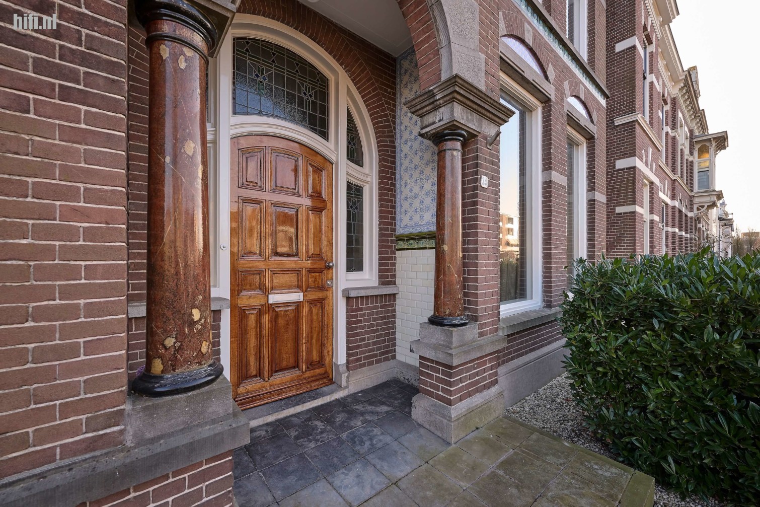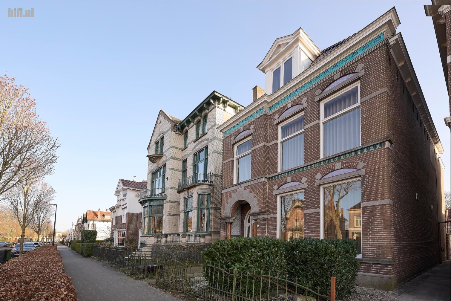 De straat waar het pand zich bevindt blijkt recent van nieuwe bestrating te zijn voorzien en samen met het vele groen en het grote aantal statige oude villa’s is een bijzonder prettig aandoend geheel ontstaan. Het pand van mijn bestemming dateert uit 1910 en is gebouwd in een eclectische stijl (verschillende elementen en stijlen zijn samengevoegd) en getooid met verschillende Art Nouveau versieringen. Samen met de stijlvolle buurt doet het mij meteen best sterk aan het voormalige Rhapsody en tegenwoordig Listening Matters onderkomen aan de Borneolaan in Hilversum denken.