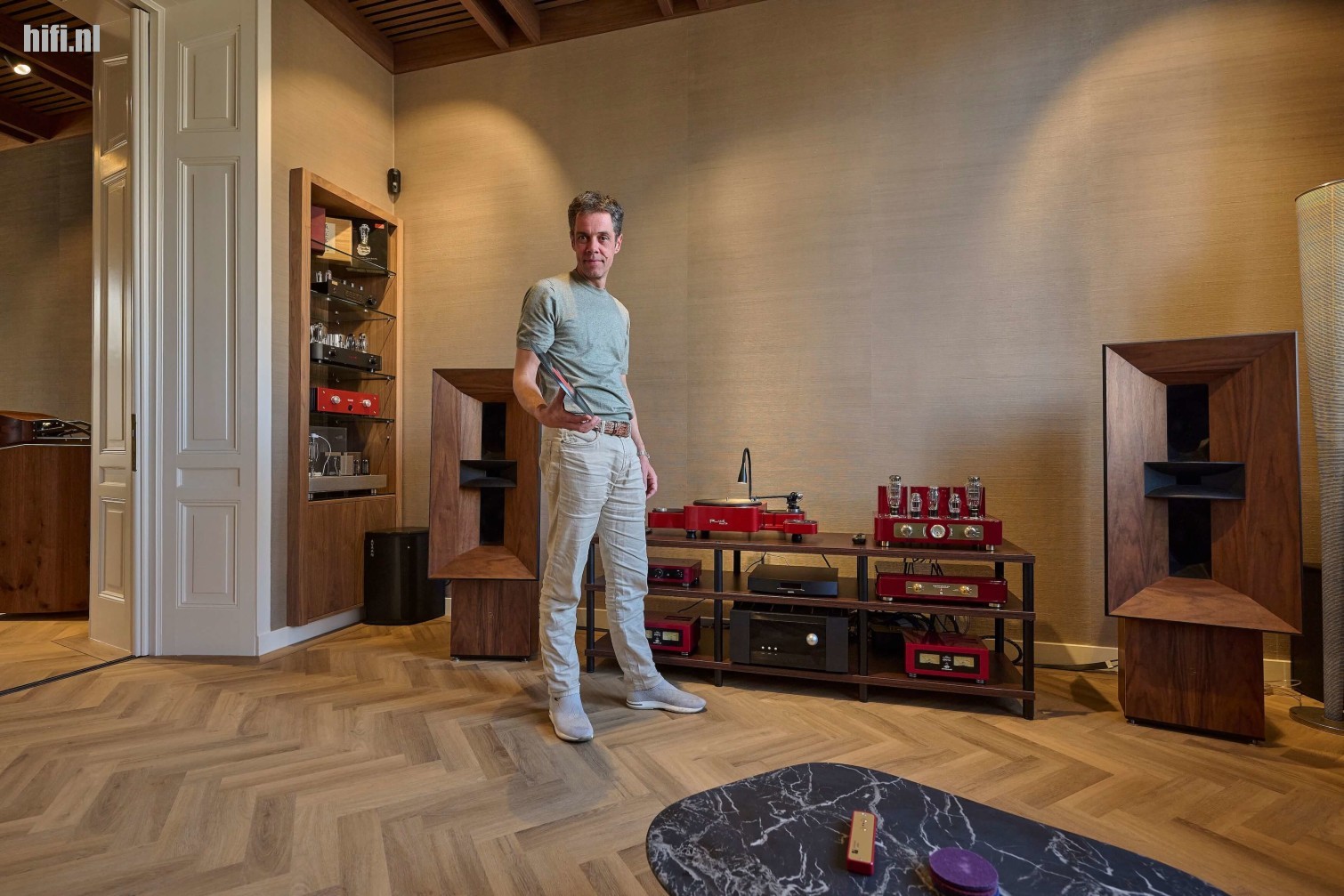 "Mijn vader was een echte audiofiel in hart en nieren en ik koester de vele intense bezoeken die ik samen met hem bij winkels zoals bijvoorbeeld Rhapsody in Hilversum heb afgelegd. Ik was toen rond de 12 jaar. Uiteraard raakte ik hierdoor steeds meer besmet met het hifi-virus en toen ik bij de leeftijd van 30 was aangekomen, speelde ik na een hele reeks aan andere systemen, uiteindelijk met een voor die tijd best gewichtige set. Wat te denken van Bowers & Wilkins 801 luidsprekers, Krell voor- en mono eindversterkers (KMA-160) en een Marantz CD11 CD speler met MIT-bekabeling. De muzikale belevingstocht staat nooit stil waardoor ik op zekere dag bij Audio21 voor het eerst in aanraking kwam met de combinatie buizen en hoog rendement luidsprekers."