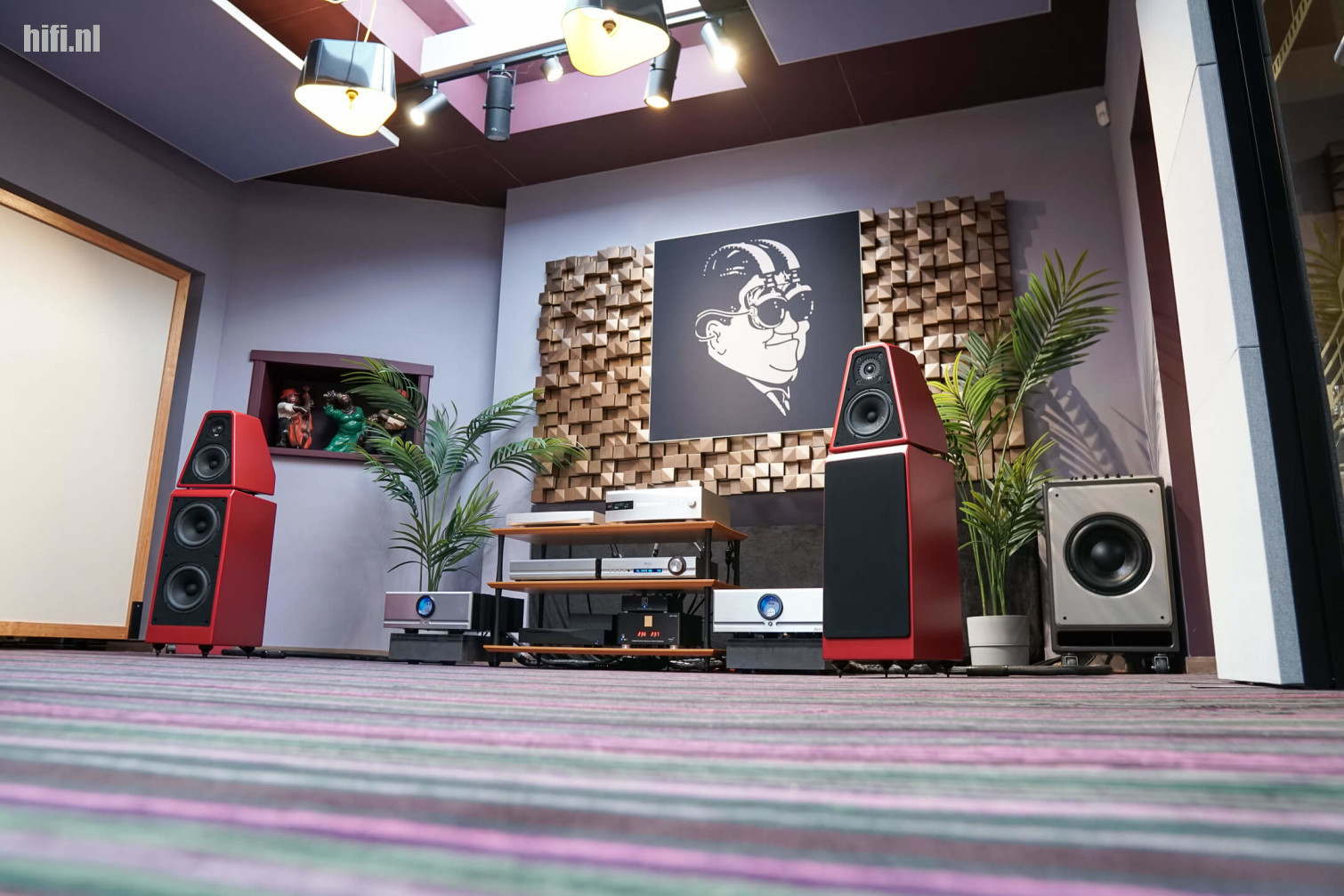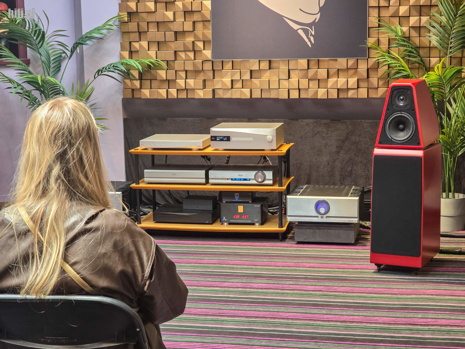 Die ‘Apex’ toevoeging geeft aan dat deze DAC-streamer-cd-speler voorzien is van het nieuwe en betere analoge uitgangsgedeelte, waardoor het ook de Pass Labs XP-22-voorversterker en twee Pass Labs XA60.8 monoblokken (in klasse A!) perfect kon aansturen. Een paar rode Wilson Audio The Watt/Puppy’s en die Submerge maakte het verhaal compleet – met een eervolle vermelding voor Shunyata-bekabeling en een scheidingstransformator van Torus Power. Als je dit allemaal leest, klinkt het misschien niet compact in de oren, maar in deze kamer hebben we toch enkele heel fraaie tracks gehoord die subliem klonken.