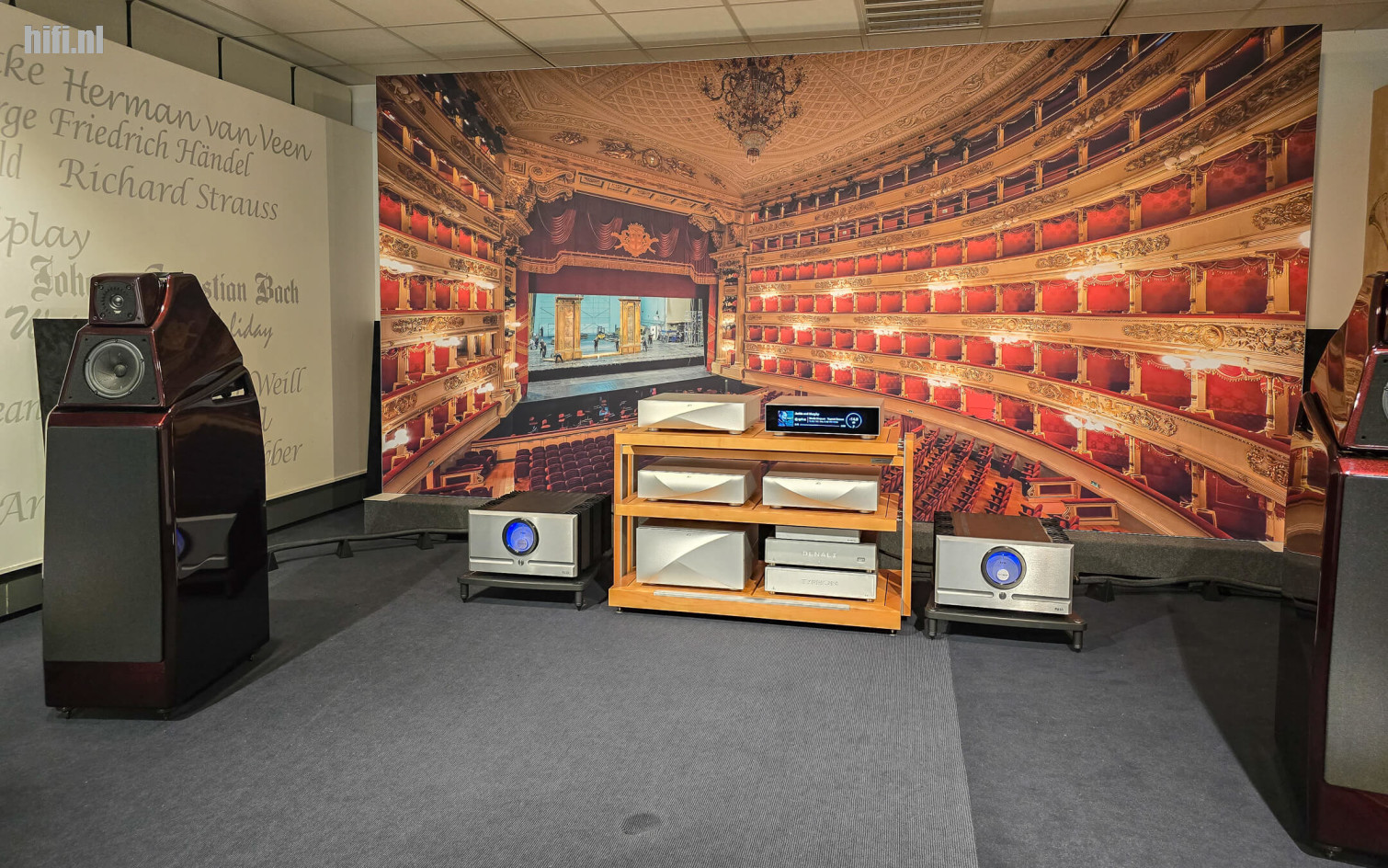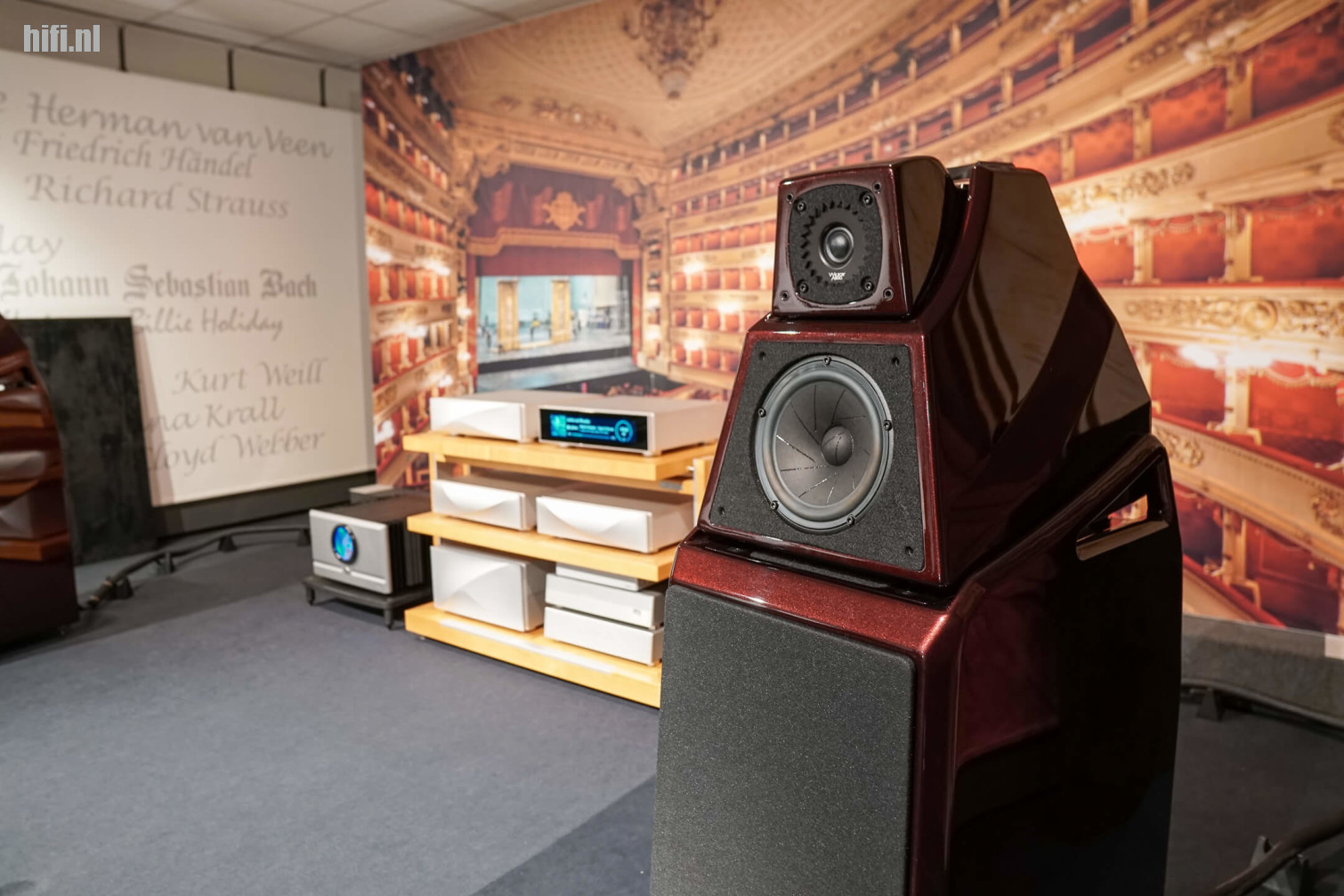 Assistentie kwam er ook van Wilson Audio-importeur Reference Sounds, die een paar The Watt/Puppy’s, een setje Sabrina X’en én een duo Wilson Audio Alexia V in drie luisterruimtes van Alpha parkeerde. En nog iets intrigerends: toen wij de show een aantal uur bijwoonden, stond het niet te spelen, maar wel present als ‘undercover’ primeurtje: de Submerge, Wilson Audio’s 1,6 kW sterke subwoofer die belooft vanaf 5 Hz subbas te produceren. En als je heel goed oplette in de grote set, zag je ook de SS-1 Pro netwerkswitch van Matrix Audio.