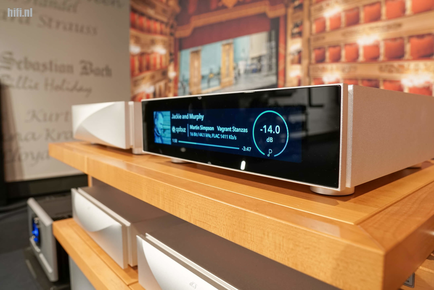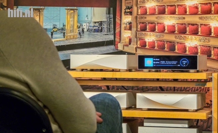 De dCS Lina was vorig jaar nog een EISA Award-winnaar omdat het zo’n innovatief concept was. Je zou het zelfs een mini-Varèse kunnen noemen, want net als het dCS-vlaggenschip wordt hier geopteerd om functies in aparte behuizingen te stoppen en zo een toren te bouwen. Wél eentje met een kleiner voetafdruk, al is de afwerking op een even hoog niveau. Interessant weetje: de ontwikkeling van de Lina begon na de Varèse, maar verscheen eerder. Hierdoor zijn er wel inzichten van dat topmodel in dit kleiner systeem verwerkt. Wat hier vooral heel boeiend was? Programme Manager Andrew Szelke demonstreerde op een heel rustige, aangename manier wat de impact is van een externe klok. Geen Big Ben echter in deze Engelse kamer, maar wel de Lina Master Clock.