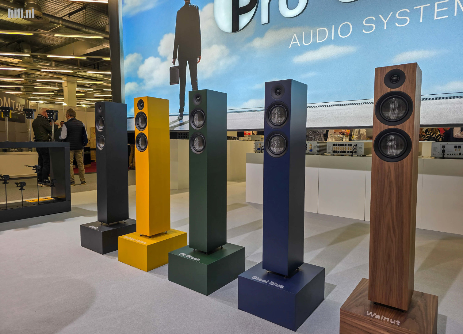 Bij Wharfedale waren alle ogen gericht op de speakers uit de nieuwe Evo 5-reeks. Het is een grotere update dan misschien eerst lijkt, want nagenoeg alle elementen (cross-over, driver en kast) zijn aangepakt, hoorden we van ontwerper Peter Comeau. Je kunt nu ook kiezen voor een grijze finish die visueel opgaat in de omgeving. Daarnaast zijn er drie andere kleuren die wat klassieker zijn, maar ook met hun matte afwerking fraai oogden.