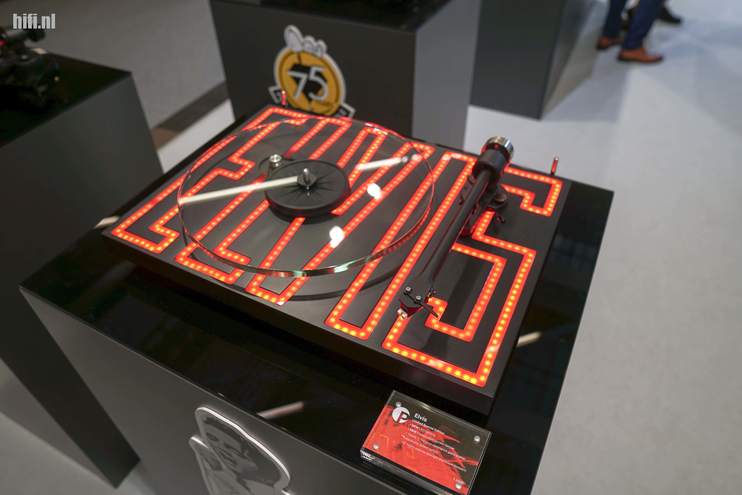 Het contrast tussen een alles-er-op-en-eraan platenspeler van Transrotor versus de kleine streamermodule die in zo’n nieuwe Advance Paris-versterker past, het is wel wat. Het zal niet verbazen dat op een beurs die de naam ‘High End’ draagt, dat heel goedkope budgetproducten afwezig tekenen. Maar vinyl blijft populair (hoewel nieuwe releases soms pittig duur zijn…), wat betekent dat er ook heel wat platenspelers en accessoires zijn die je gerust bereikbaar mag noemen. Met stip op één qua de breedte en aantal introducties staat natuurlijk Pro-Ject, de sterk in Europa ingebedde fabrikant. Wie niet helemaal door de donder geslagen was door de bliksemvormige AC/DC-speler die de Oostenrijkers enkele weken geleden introduceerden, die laat zich misschien verleiden door de grote rode led-letters die de nieuwe Elvis-draaitafel sieren. Wat, geen Elvis-imitator in volle Vegas-outfit die “Thank you very much” prevelt op de stand? Een gemiste kans!