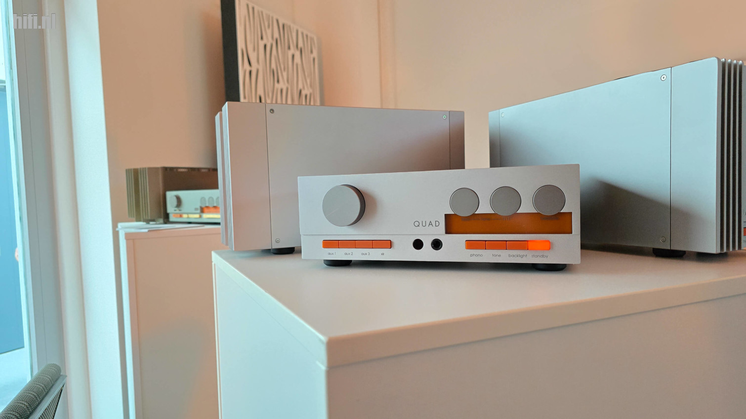 Je kon in de Beierse hoofdstad ook luisteren naar de ESL X, een remake van Quads iconische elektrostatische speakers. Het merk plaagde ook met een prototype van een geïntegreerde versterker die duidelijk geïnspireerd is op de 33 en 303 – incluis oranje display.