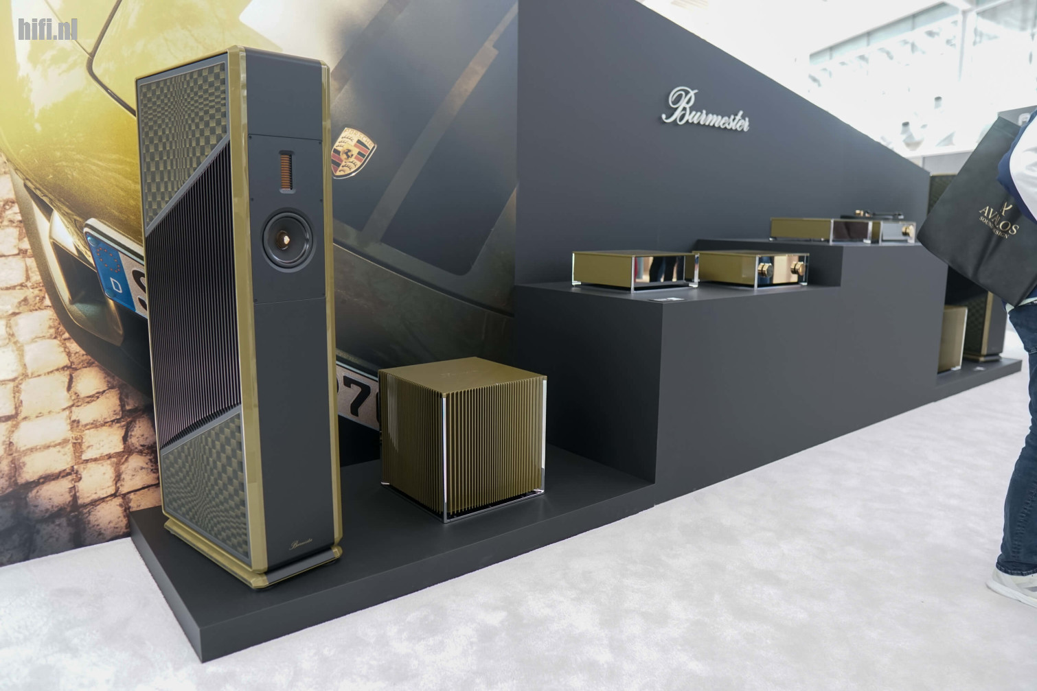 Met een mooi kleurtje val je sowieso op, dat weten ze wel bij Duitse high-endmerk Burmester. Het MOC is verdeeld in grote hallen beneden en boven grote kamer rond een open atrium, met daarachter gangen met weer andere kamers. In één atriumruimte had Burmester een wel heel grote voetafdruk, met dan een gigantische opstelling met aan een kant toestellen allemaal uit een kakigroen, en aan de andere kant apparaten in allerlei hippe tinten. Een geslaagde manier om de nieuwe Reference-lijn in de kijker te zetten…