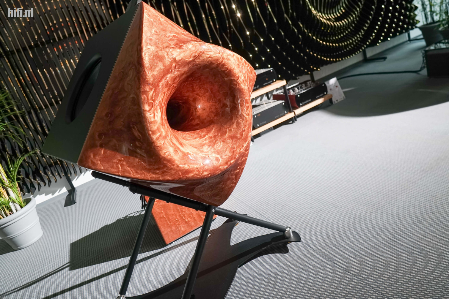 Deze Pallas-speakers van Aries Cerat zijn overweldigend. Ze torenden boven de aanwezigen uit, want ze zijn nog veel absurder groot dan deze foto laat uitschijnen. De grote hoorns op de voorkant vallen op, maar elke speaker bezit ook nog eens acht 12-inch woofers (vier per zijkant). Indrukwekkend, dat was wel het juiste woord.
