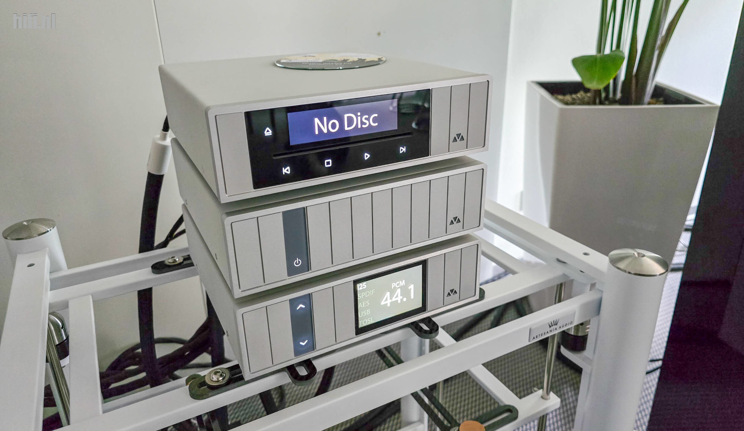 Métronome zie je in ons onze regio niet zo vaak langskomen, op HEM vonden we dit compact systeem wel knap ogen en klinken (met de Davis Acoustics The Stage-speakers). De DST CD Transport bovenaan is gloednieuw, en hing aan de DSC mini (onderaan, een DAC) met de DSS 2 netwerkspeler in het midden.