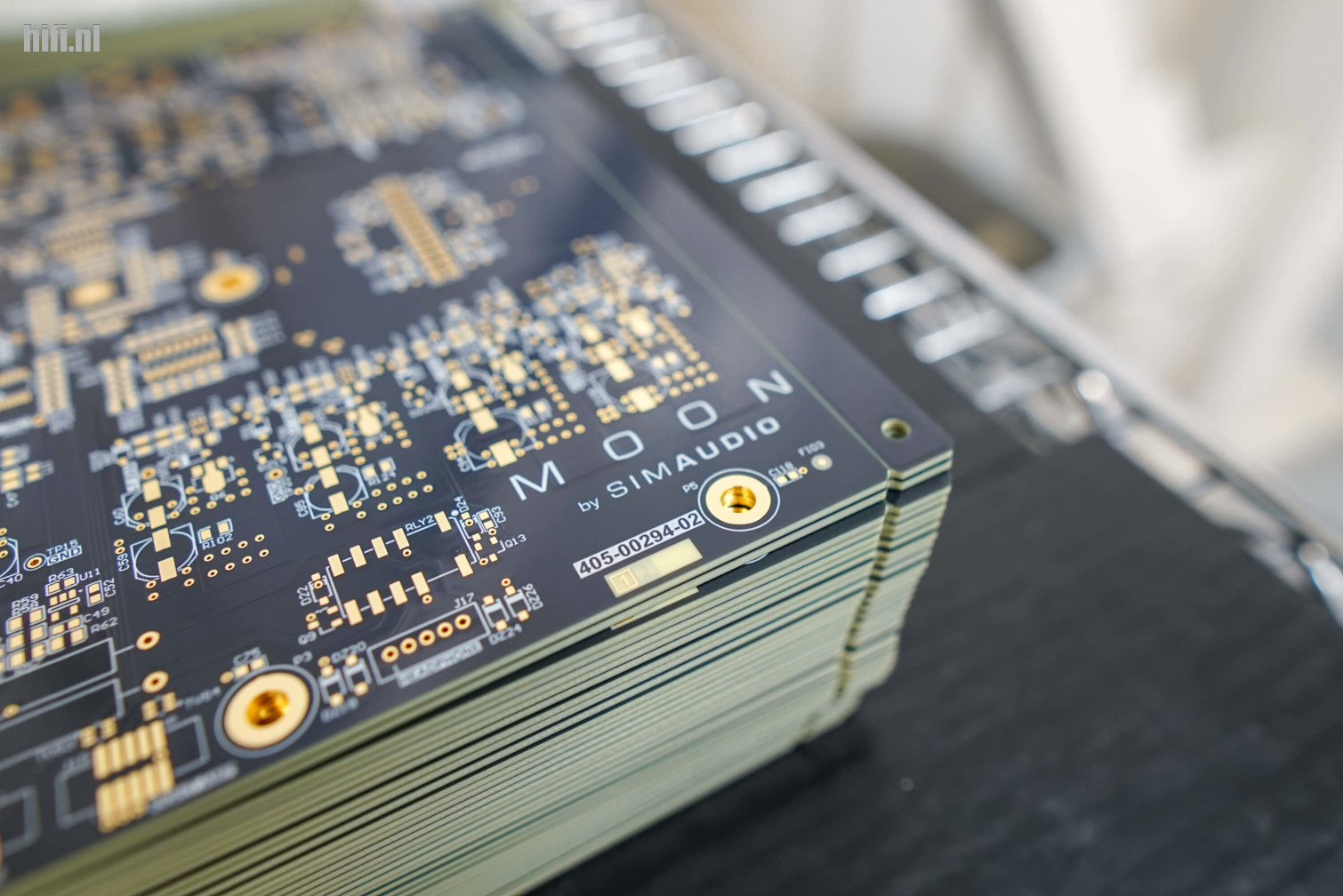 Wat echt indruk maakt als we er rondlopen: MOON doet op vlak van fabricage nagenoeg alles zelf. Van componenten geautomatiseerd plaatsen op eigen PCB’s over het vormen van geperst aluminium tot fraaie behuizingen tot het creëren van de fijnste details met behulp van een reeks geavanceerde CNC-machines. We zijn al vaker bij een audiofabriek binnengelopen, maar het is zelden dat alle stappen écht in-huis gebeuren. De meesten zullen werken met partners uit de buurt om bijvoorbeeld een aluminium voorpaneel piekfijn af te werken of gesoldeerde printplaten ontvangen. Hier gebeurt het in één groot gebouw, waarin een 50-tal werknemers te vinden zijn.