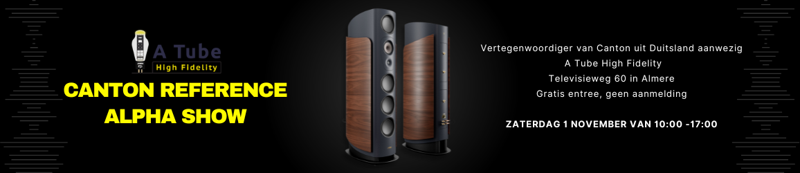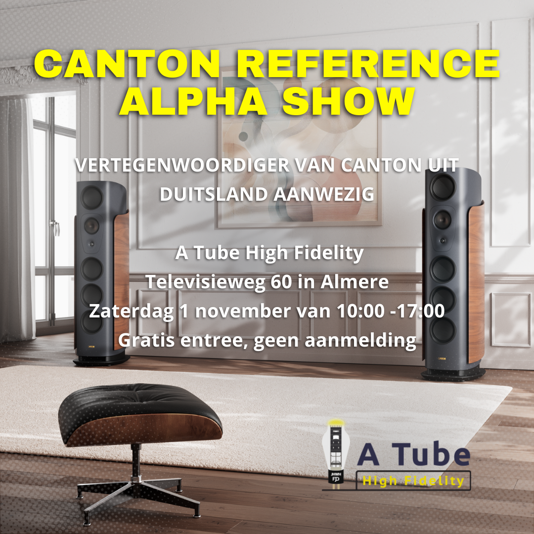 De in Almere gevestigde audiodealer A Tube High Fidelity zal op zaterdag 1 november 2025 een luistershow organiseren met de vloerstaande luidsprekers Reference Alpha 1 van het Duitse Canton in het middelpunt. Deze manshoge luidsprekers zijn het toppunt van techniek en design na jaren ontwikkeling bij Canton. A Tube High Fidelity heeft een eigen parkeerterrein, de toegang tot de luistershow is gratis en aanmelding is niet nodig.