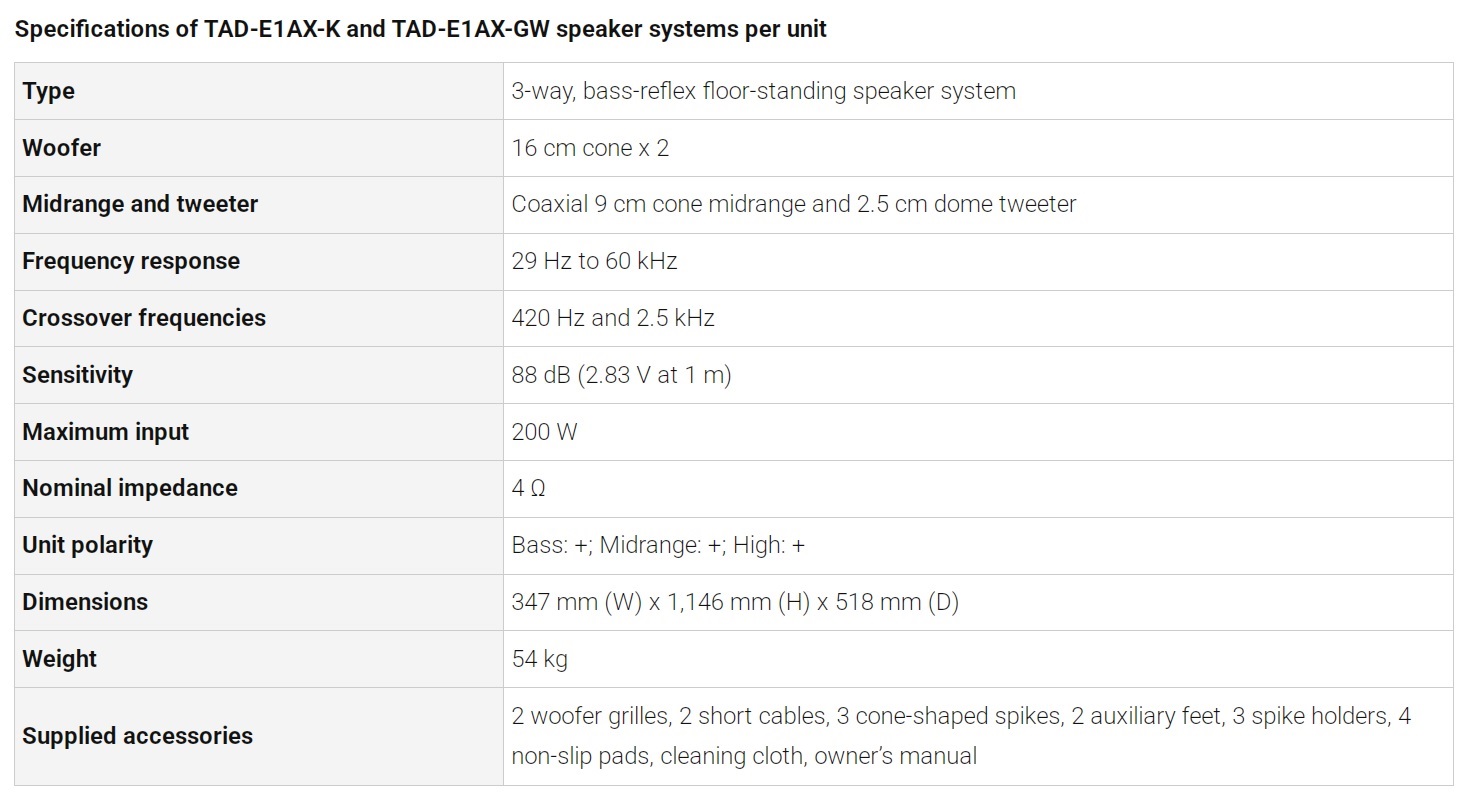 Het Japanse Technical Audio Devices Laboratories, Inc. (TAD) heeft een nieuwe luidspreker gelanceerd. Het is een vloerstaander genaamd TAD-E1AX en hij komt in een witte en een zwarte uitvoering. De TAD-E1AX is de nieuwste toevoeging aan de Evolution-luidsprekerserie en is de opvolger van de TAD-E1TX die begin 2019 werd geïntroduceerd.