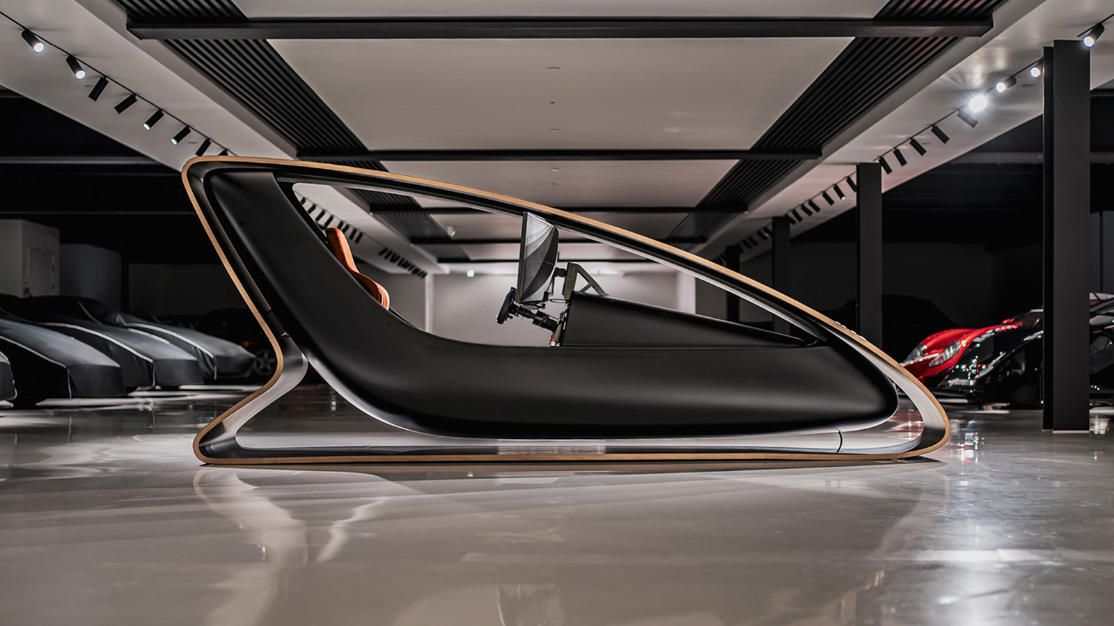 De zwevende monocoque van koolstofvezel eronder doet denken aan de cocon van een moderne racewagen, met daarin een verstelbare pedalenbak, een Precision Sim Engineering LM Pro-stuurwiel en een 49-inch 5K-scherm met gebogen vorm, aangestuurd door een speciaal computersysteem. Elke Racing Simulator is afgewerkt met een discreet genummerde plaquette van Vaughtons, het historische bedrijf uit Birmingham dat verantwoordelijk is voor enkele van de meest herkenbare auto-emblemen uit de geschiedenis.