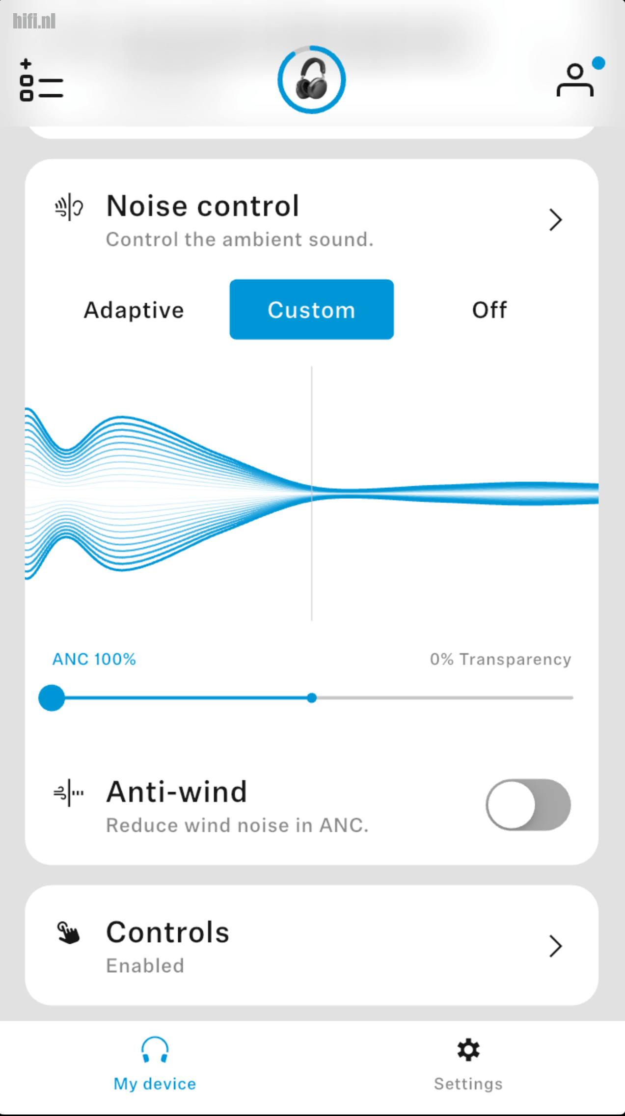 Noise-cancelling zit er ook op de HDB 630. Niet iedere muziekliefhebber is hier dol op, maar je kunt het bij een sessie muziek luisteren in de sofa ook volledig uitschakelen. Bovendien bezit Sennheiser op dit vlak wel wat ervaring, waardoor deze functie weinig destructief is en toch behoorlijk goed werkt. Standaard staat het in een adaptieve stand, waarbij de hoofdtelefoon zelf een gepast niveau opzoekt. Net als bij de Momentum 4 Wireless (onlangs hier nog getest op zustersite Techfi.nl) gedraagt die adaptieve stand zich eerder voorzichtig. Zowel bij een treinreis als bij het thuiswerken met veel lawaai op straat, kon ik meer herrie elimineren door handmatig de Custom-stand in de app te selecteren en dan voor 100 procent ruisonderdrukking te kiezen. Wat je dan wél hebt, is dat die extra processing de kwaliteit iets aantast. Maar de schade valt heel erg mee, en in een luidruchtige omgeving wel het waard om te ondergaan. Als je dan onderweg moet bellen, blijkt die audiofiele koptelefoon ook nog eens over uitstekende microfoons te beschikken.