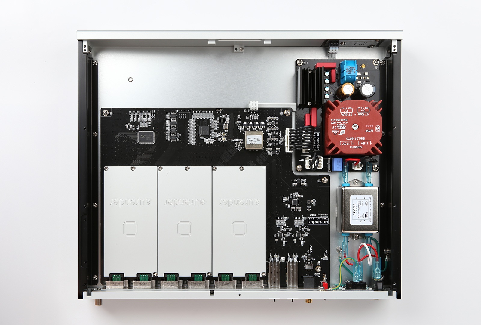 Waar gewone hubs afhankelijk zijn van ruisende schakelende voedingen, kiest Aurender voor een zuiver lineaire regeling over elk circuit. Deze aanpak garandeert een uitzonderlijk zuivere stroomtoevoer, waardoor hoogfrequente interferentie bij de bron wordt verwijderd en kostbare voedingsupgrades overbodig zijn.