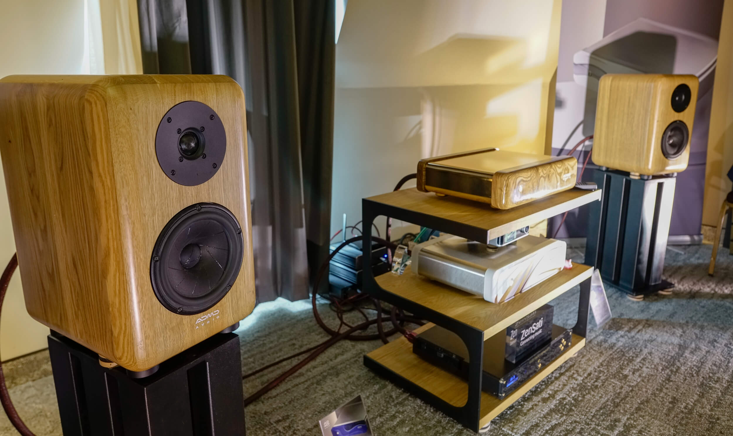 Polen mag niet naast de deur liggen, de grootschaligheid lokt ook vertegenwoordigers van Benelux-distributeurs. Een zo’n groep – hallo, Team Mafico! – tipte de kamer van ADMD Audio. Dit Duits merk presenteerde er iets heel anders dan de hedendaagse lijnen van pakweg Kii of Dutch & Dutch: actieve speakers met een heel weelderige houtconstructie. Eigenlijk is ADMD gespecialiseerd in R2R DAC’s, ook verpakt in spectaculaire houten of aluminium behuizingen.