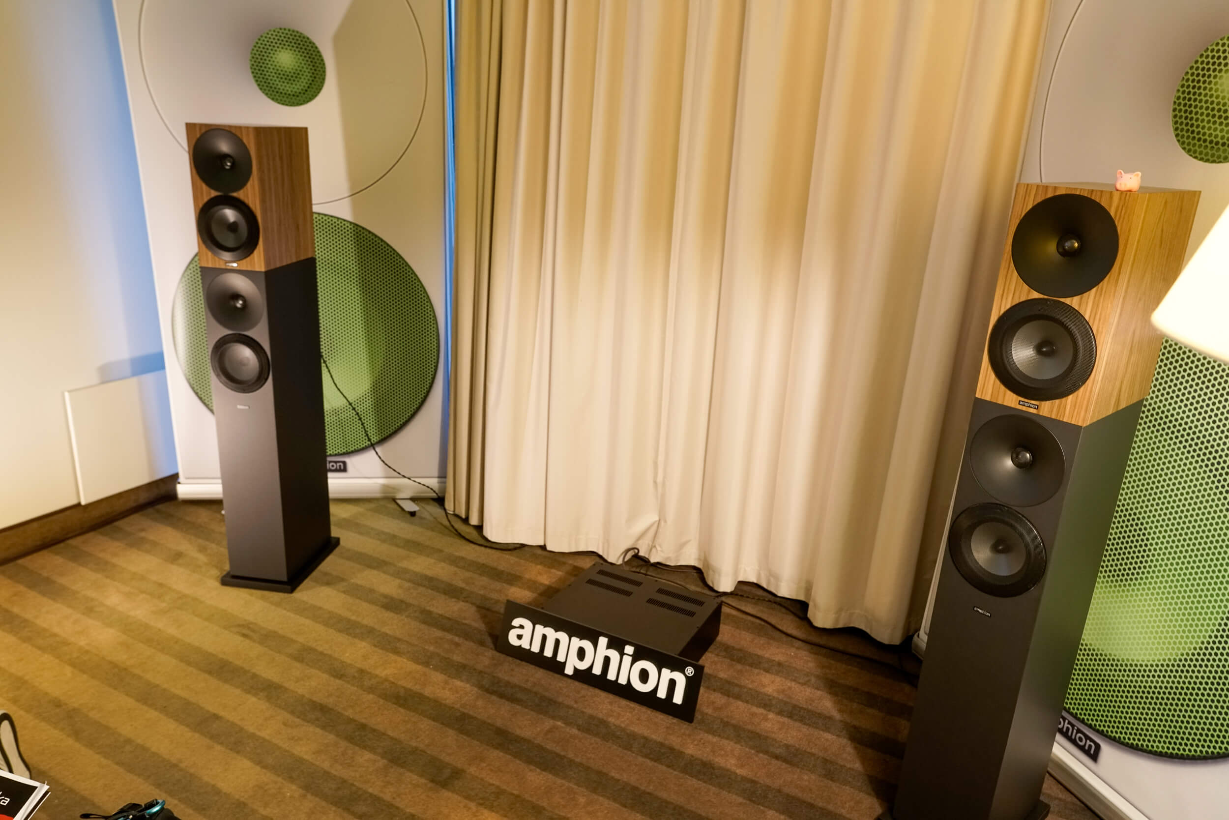 Amphion-CEO Anssi Hyvönen demonstreerde persoonlijk de speakers van het Finse bedrijf. Het draaide in deze kamer rond de fonkelnieuwe Argon audio X-lijn, die eigenzinnig afwisselend gedemonstreerd werden door aan elke kant een Argon 3X-boekenplankspeaker boven op een 7LX-vloerstaander te parkeren. Maar omdat die toren vrij bescheiden van hoogte is, lukte dat wel. Een mooi vol geluid dat uit die Argon 3X rolde!