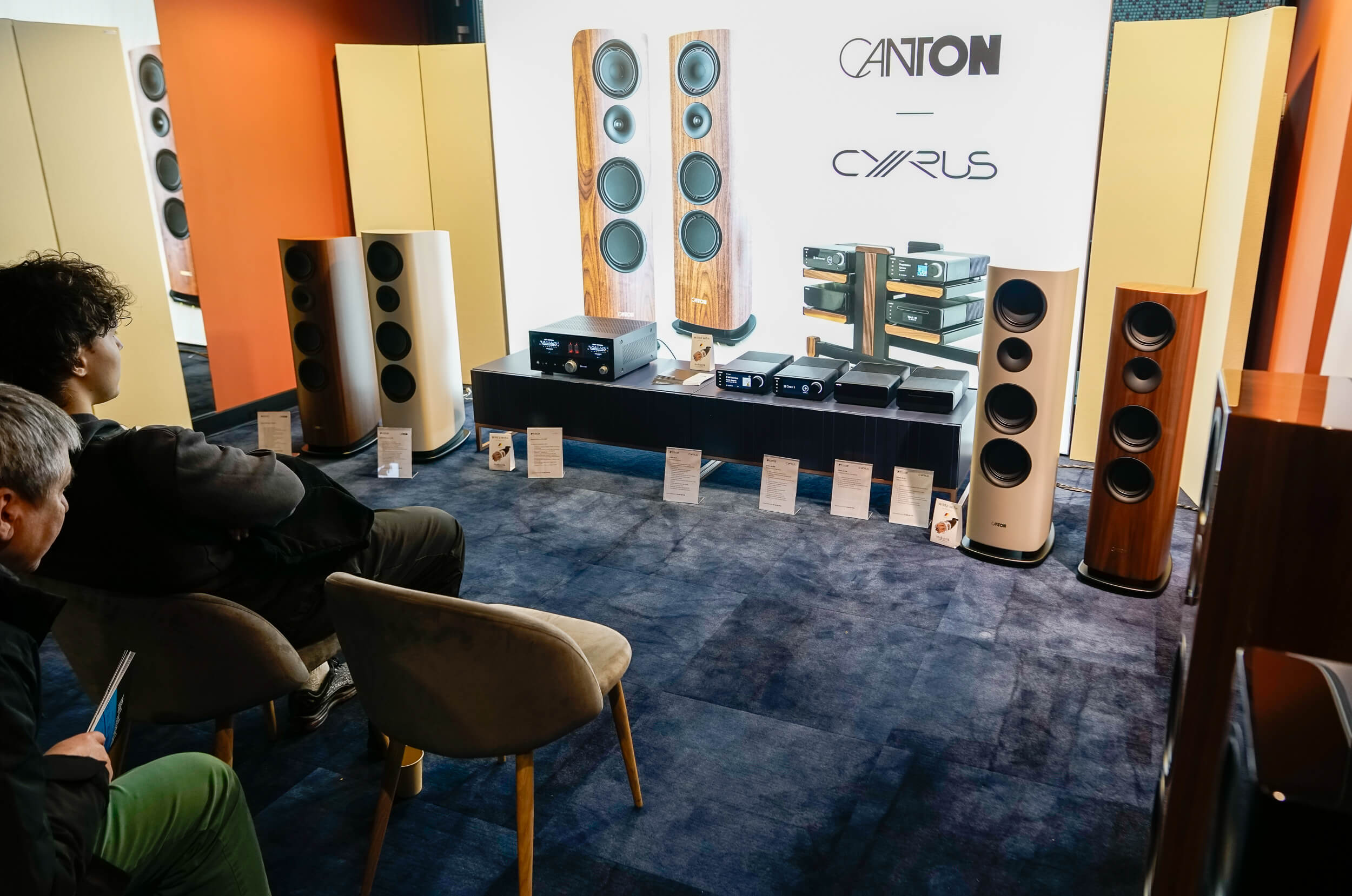Een combinatie die verrassend ‘klikte’ was die van de Canton Reference 5 GS-edition in een knappe zandkleur met een hele reeks Cyrus Audio-toestellen uit de Serie 40. Zoals we van de Britten gewoon zijn, zijn die Cyrus-apparaten lekker compact, wat het allemaal interieurvriendelijk hield. Cyrus staat natuurlijk ook op punt om de Series 80 te lanceren, toestellen op volledige hifi-grootte zoals het merk nooit eerder presenteerde.